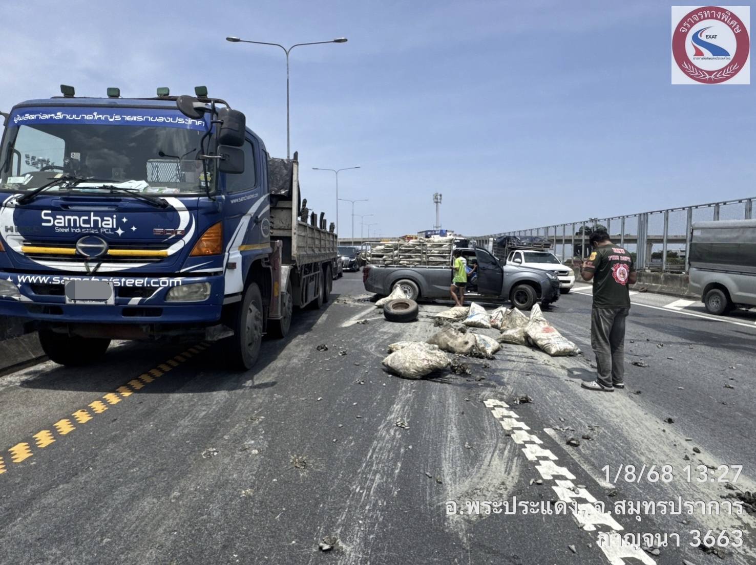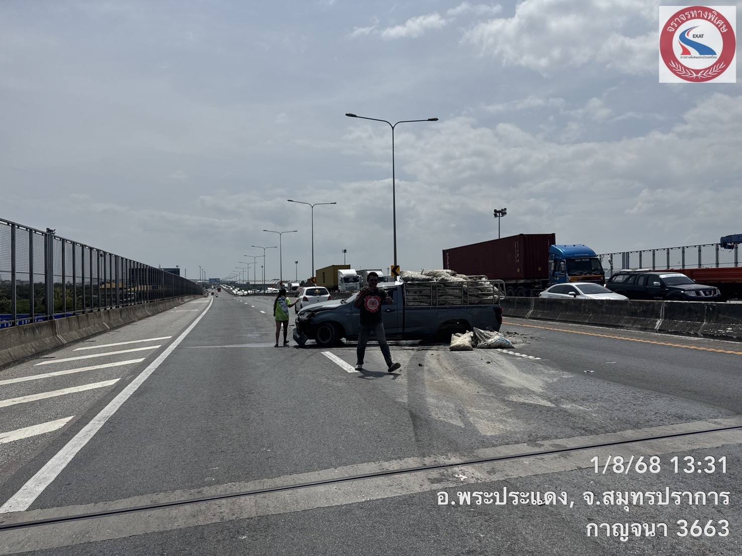 1สิงหาคม 2568 แฟนเพจเฟซบุ๊ก “ข่าวสารงานจราจรทางพิเศษ บางพลี-สุขสวัสดิ์” รายงานล่าสุด เมื่อวเลา 13.28 น. บนทางพิเศษด่วนกาญจนา (บางพลี-สุขสวัสดิ์) จากบางพลี ไปพระราม 2 กม.14.900A ใกล้เคียงช้างเอเราวัณ เกิดอุบัติเหตุรถกระบะบรรทุกของ ล้อหลังหลุด เสียหลักชนขอบทาง กรณีดังกล่าวมีผลให้การจราจร จากเทพารักษฺ์ หรือจาก ศรีนครินทร์มุ่งหน้าไป พระราม 2 ติดขัดเป็นอย่างมาก โดยจุดเกิดเหตุเสียช่องจราจร 2 ช่องทาง เลนซ้ายและเลนกลาง จนท.ถึงแล้วกำลังเร่งเคลื่อนย้าย