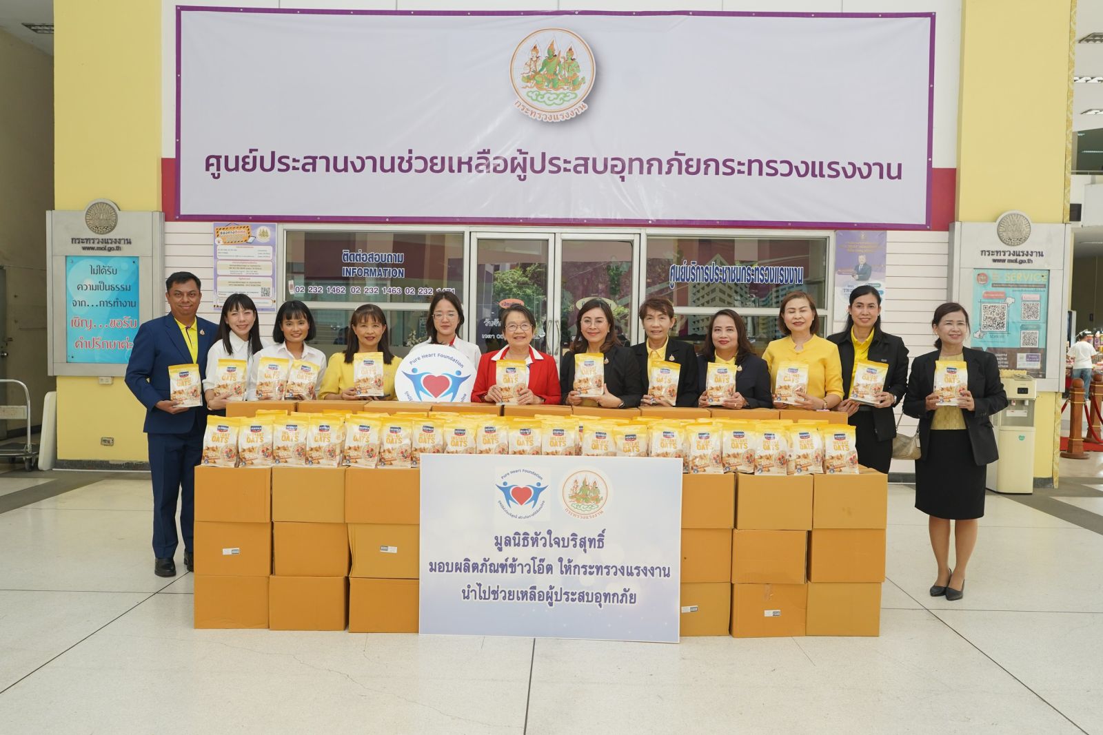 1 สิงหาคม 2568 - มูลนิธิหัวใจบริสุทธิ์ นำโดย นางเธียรรัตน์ นะวะมะวัฒน์ ประธานมูลนิธิ เดินหน้าส่งต่อความห่วงใย มอบข้าวโอ๊ต 600 ถุง รวมมูลค่า 120,000 บาท ให้แก่ กระทรวงแรงงาน เพื่อใช้ในการช่วยเหลือประชาชนที่ได้รับผลกระทบจากสถานการณ์อุทกภัยใน 11 จังหวัด โดยมี นางสาวบุปผา เรืองสุด รองปลัดกระทรวงแรงงาน เป็นผู้รับมอบ ณ กระทรวงแรงงาน