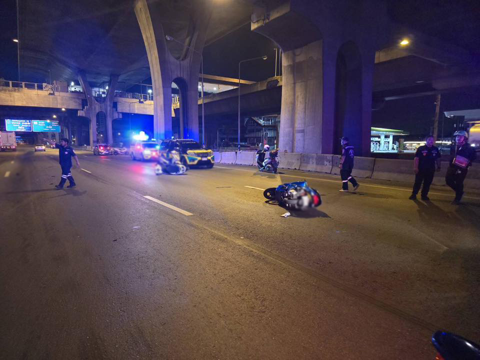 รถจักรยานยนต์เฉี่ยวชนกัน กลางถนนเทพรัตน (บางนาตราด) ขาเข้า ช่วง กม.10 ในช่องทางหลัก มีผู้เสียชีวิตและเจ็บหลายราย จ.สมุทรปราการ