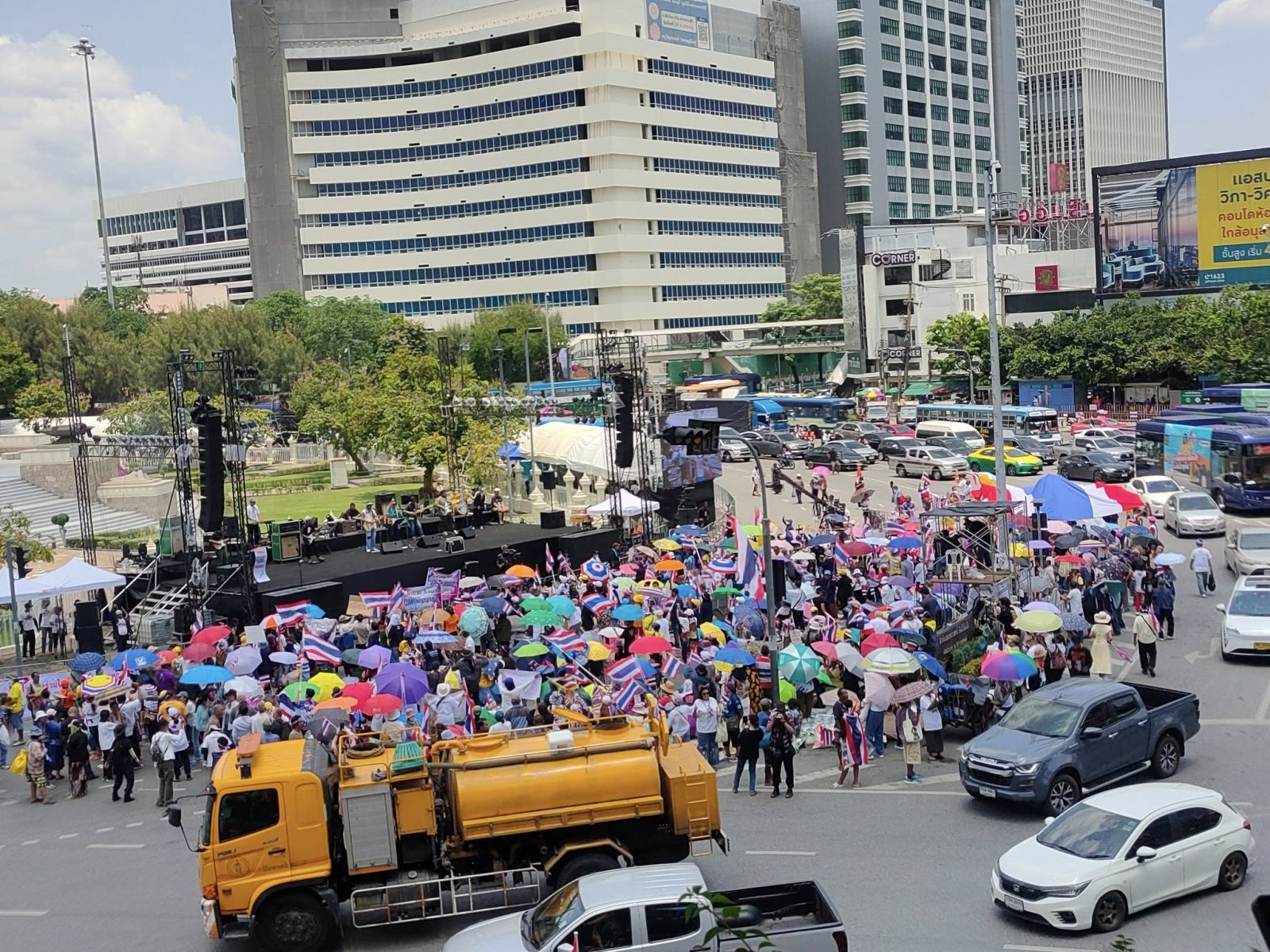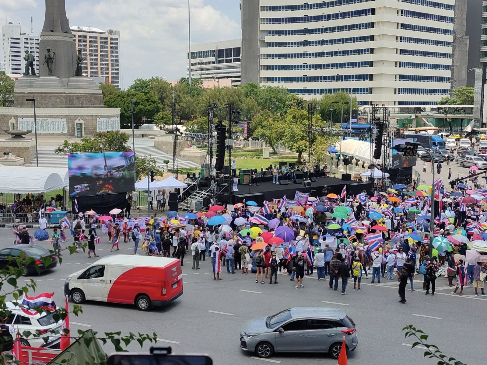 ตั้งแต่ช่วงเวลาประมาณ 10.00 น. เริ่มมีประชาชนบางส่วนทยอยเข้าจับจองพื้นที่ พร้อมชูธงชาติเป็นการแสดงออกเชิงสัญลักษณ์ ท่ามกลางอากาศที่ร้อนจัด และคาดว่าจะมีประชาชนเข้าร่วมชุมนุมราว 10,000 คน
