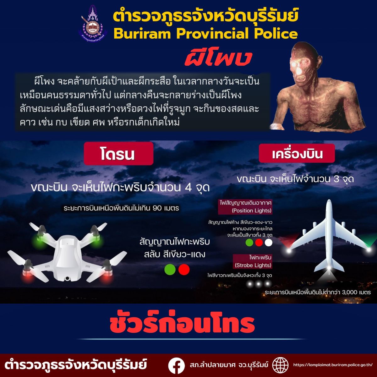 ตำรวจภูธรจังหวัดบุรีรัมย์ สภ.ลำปลายมาศ แนะการสังเกต โดรน ในยามค่ำคืน