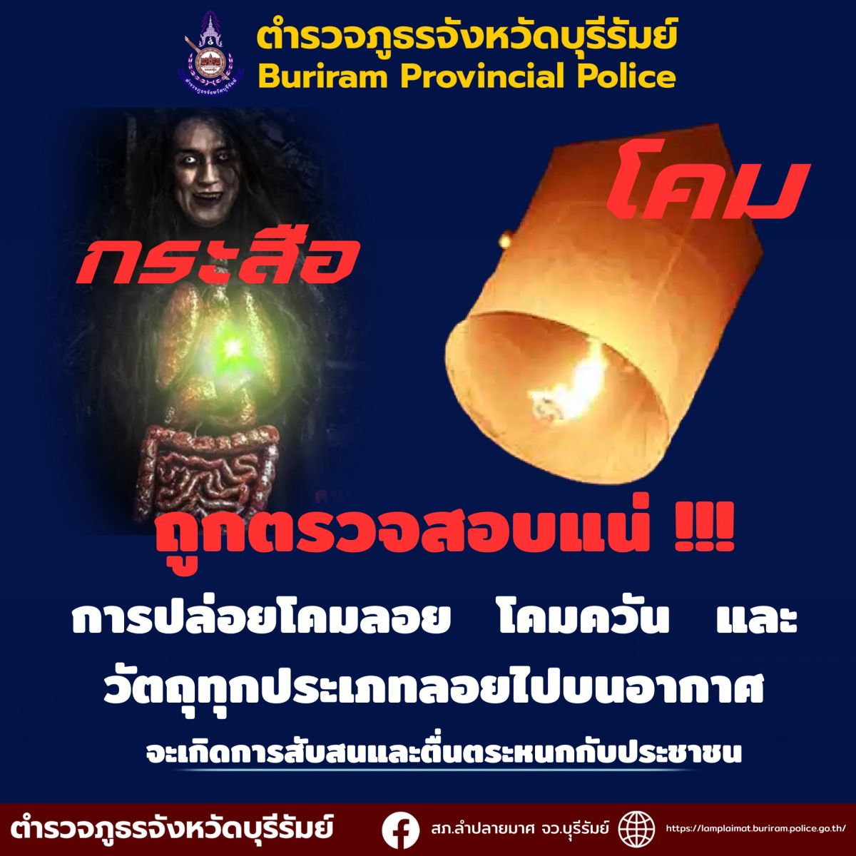 ขอความร่วมมือ งดการปล่อยโคมลอย โคมควันและวัตถุทุกประเภทลอยไปบนอากาศ