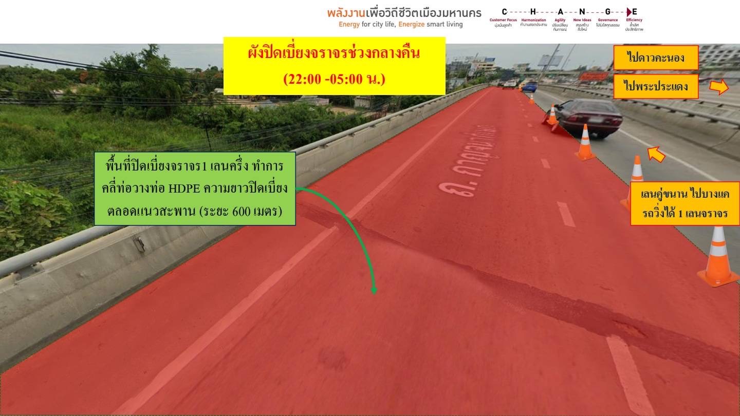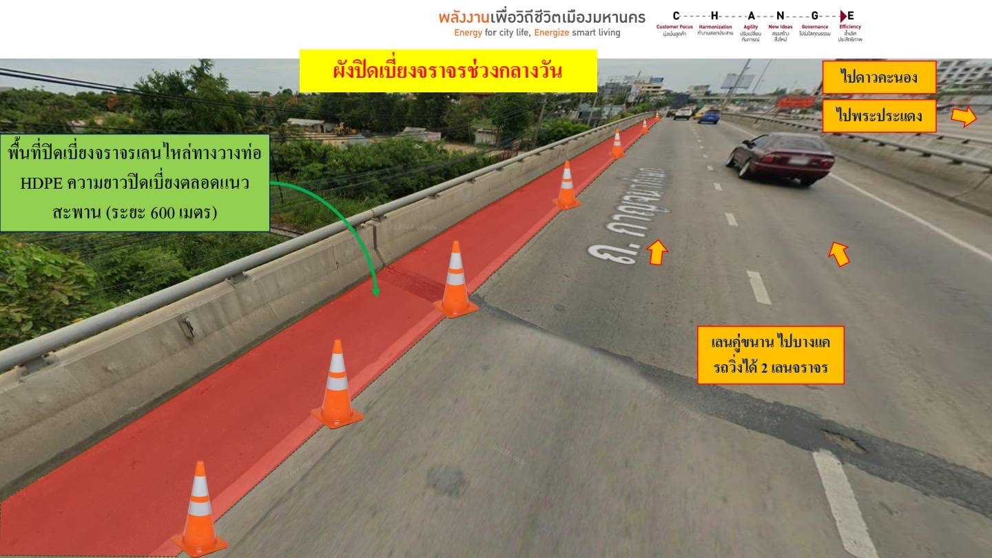 MEA แจ้งปิดเบี่ยงจราจรเพื่อก่อสร้างบ่อพักและท่อร้อยสายไฟฟ้าใต้ดิน วันที่ 4 ส.ค.68 (เริ่มปิด 21.00 น.) - 11 ส.ค.68 (10.00 น.) บริเวณทางแยกต่างระดับบางขุนเทียน-เอกชัย โดยเวลา 21.00-5.00 น. ปิดเบี่ยง 1ช่องทาง และเวลา 5.00-21.00น. ปิดช่องไหล่ทาง