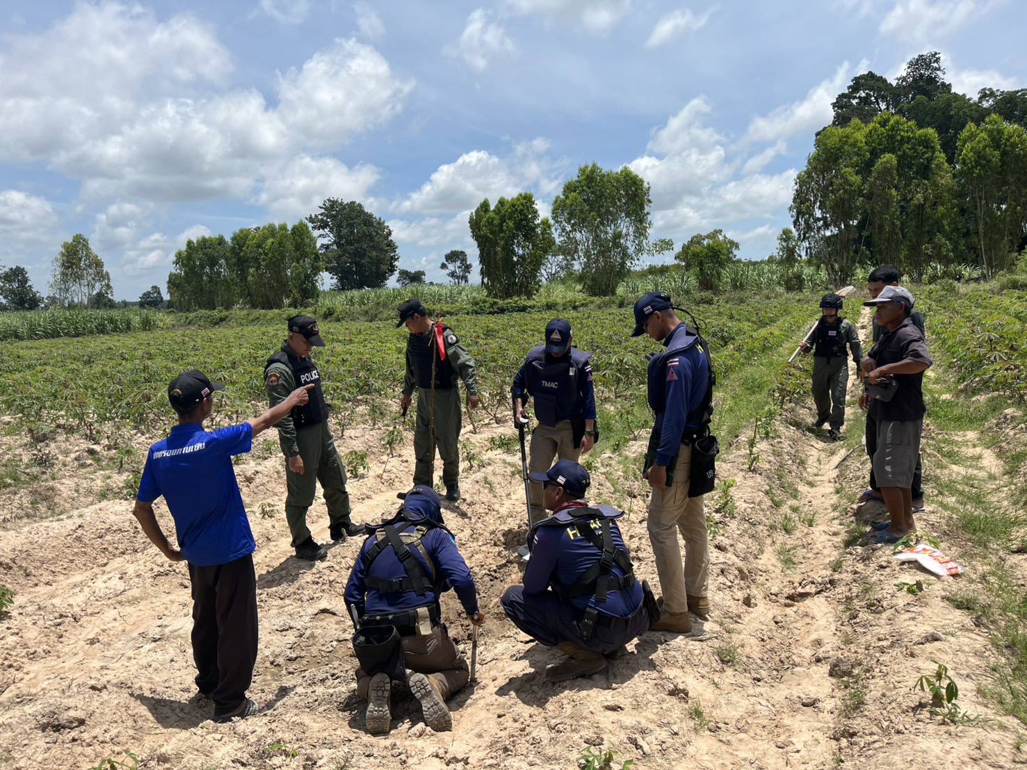 วันนี้ (4 สิงหาคม 2568) พ.ต.อ. ต่อศักดิ์ ศรีเสริม รองผู้บังคับการตำรวจภูธรจังหวัดสุรินทร์ (รอง ผบก.ภ.จว. สุรินทร์) นำทีมชุดเก็บกู้และทำลายวัตถุระเบิด (EOD) กองกำกับการสืบสวน ภ.จว. สุรินทร์ พร้อมด้วยเจ้าหน้าที่ตำรวจจากสถานีตำรวจภูธรกาบเชิง เข้าตรวจสอบพื้นที่กระสุนตกในเขตอำเภอกาบเชิง จังหวัดสุรินทร์ หลังได้รับแจ้งจากประชาชนในพื้นที่