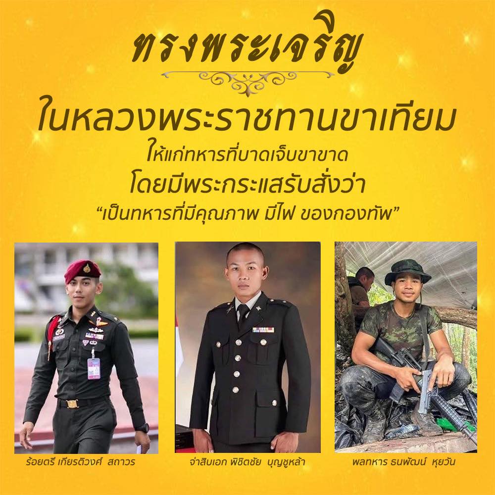 พระบาทสมเด็จพระเจ้าอยู่หัว ทรงพระกรุณาโปรดเกล้าฯ พระราชทาน "ขาเทียมที่ดีที่สุดในโลก" ให้แก่ทหารที่ได้รับบาดเจ็บขาขาด จํานวน ๓ นาย ได้แก่