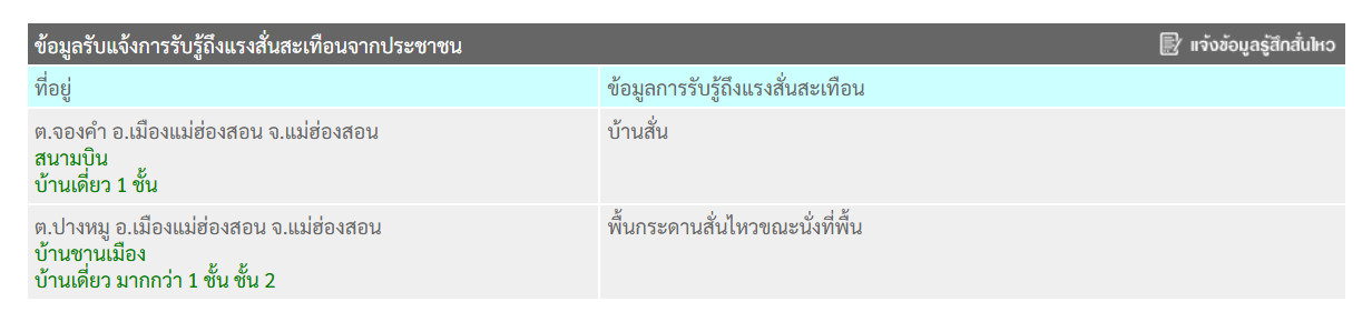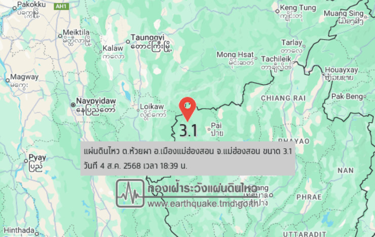 แผ่นดินไหวขนาด 3.1 ในพื้นที่เมืองแม่ฮ่องสอน สามารถรับรู้ได้ถึงแรงสั่นสะเทือน