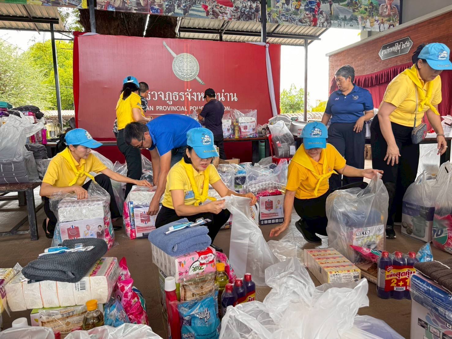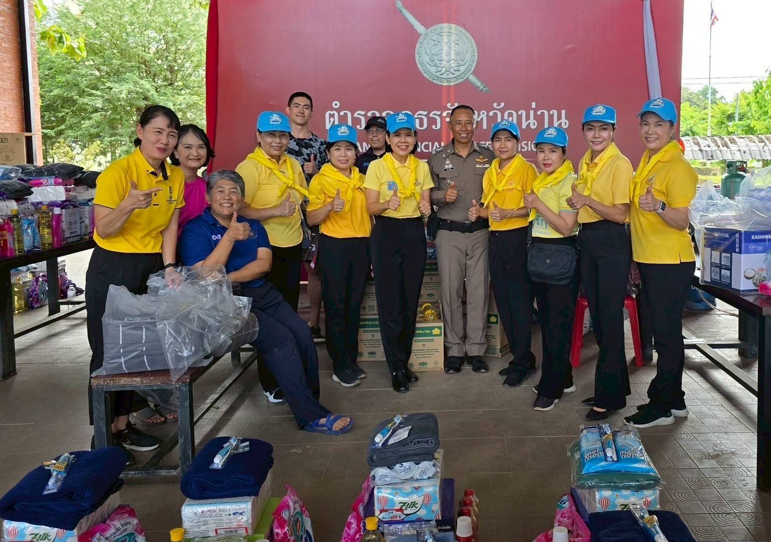 ทั้งนี้ คุณพจนารถ กรึงไกร ประธานชมรมแม่บ้านตำรวจภูธรภาค 5 นำคณะแม่บ้านตำรวจ ร่วมบรรจุถุงยังชีพ ณ ตำรวจภูธรจังหวัดน่าน โดยมี พล.ต.ต.ดเรศ กัลยา ผู้บังคับการตำรวจภูธรจังหวัดน่าน พร้อมด้วยคุณละมัย กัลยา ประธานแม่บ้านตำรวจภูธรจังหวัดน่าน และคณะฯ ร่วมดำเนินการ จากนั้นเมื่อวันที่ 2 - 3 สิงหาคม 2568 ที่ผ่านมา ประธานชมรมแม่บ้านตำรวจภูธรภาค 5 ได้ดำเนินการนำถุงยังชีพของสมาคมแม่บ้านตำรวจ จำนวน 1,125 ครัวเรือน ส่งมอบให้กับครอบครัวข้าราชการตำรวจที่ประสบอุทกภัย ในจังหวัดน่าน จำนวน 1,112 ครัวเรือน และจังหวัดแพร่ จำนวน 13 ครัวเรือน และจะได้ดำเนินการส่งมอบถุงยังชีพเพิ่มเติมให้กับครอบครัวข้าราชการตำรวจในจังหวัดพะเยา เชียงราย และจังหวัดแพร่ ในส่วนที่เหลือต่อไป