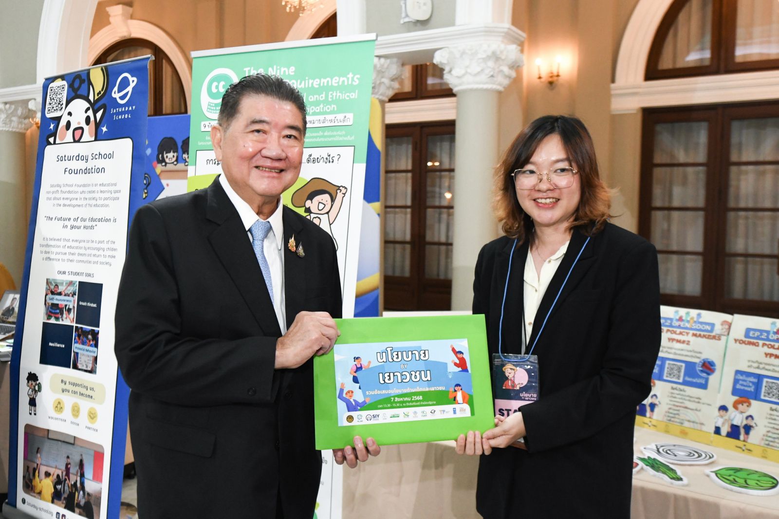 สำหรับผู้แทนเครือข่ายเด็กและเยาวชนได้นำเสนอนโยบายหัวข้อสำคัญประกอบด้วย (1) Kid for Kids’ Youth Policy: เขียนรัฐธรรมนูญใหม่ในฝันของเยาวชน / เติมทุน – หนุนการมีส่วนร่วมของเยาวชน (2) Young Policy Makers: สร้างครูให้เสมือน “นักจิตวิทยา” ในโรงเรียน (ทีม PSYJAI) (3) สภาเมืองคนรุ่นใหม่: บริการสุขภาพสำหรับคนไร้บ้าน (Healthcare for Homeless) (ทีมสุขภาวะข้างถนน) / AI Smart Primary Care - นำเทคโนโลยี AI มาใช้ในระบบการแพทย์ 4.0 (ทีม Agnos Health) (4) มูลนิธินวัตกรรมสร้างสรรค์สังคม (SIY): การพัฒนาประเมินประสิทธิภาพขององค์กรปกครองส่วนท้องถิ่น (Local Performance Assessment: LPA) เพื่อการส่งเสริมการมีส่วนร่วมเด็กและเยาวชนขององค์กรปกครองส่วนท้องถิ่น (อปท.) (5) โครงการพัฒนาสหประชาติ (United Nations Development Programme: UNDP): Youth Voice in Policy การมีส่วนร่วมของเยาวชนในการทำนโยบาย (ทีม UNDP - Student Ambassadors) (6) ไม่ทิ้งใครไว้ข้างหลัง: เสียงเยาวชนชาติพันธุ์ในการออกแบบนโยบายที่ครอบคลุมและยั่งยืน และ (7) กองทุนเพื่อความเสมอภาค: Learning Passport