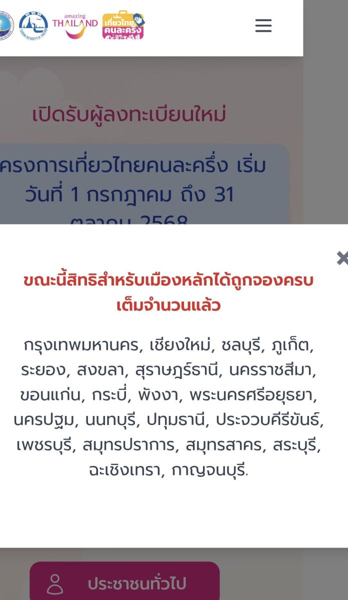 นางสาวฐาปนีย์ เกียรติไพบูลย์ ผู้ว่าการ ททท. กล่าวว่า ตามที่ ททท. ดำเนินโครงการเที่ยวไทยคนละครึ่ง เพื่อกระตุ้นการเดินทางท่องเที่ยวภายในประเทศ สร้างรายได้หมุนเวียนในระบบเศรษฐกิจด้วยการท่องเที่ยวในช่วง Green Season โดยเริ่มต้นโครงการตั้งแต่วันที่ 1 กรกฎาคม ที่ผ่านมานั้น ขณะนี้ ประชาชนได้มีการใช้สิทธิ์การจองที่พักสำหรับเมืองท่องเที่ยวหลักเต็มจำนวน 300,000 สิทธิ์แล้ว จึงได้ปิดการจองที่พักสำหรับเมืองท่องเที่ยวหลัก อย่างไรก็ตาม ประชาชนยังสามารถลงทะเบียนและเข้าร่วมโครงการ เพื่อใช้สิทธิ์จองที่พักในเมืองน่าเที่ยวที่ยังคงมีจำนวนสิทธิ์คงเหลือกว่า 80,000 สิทธิ์ และสามารถเดินทางใช้สิทธิ์ใน 55 จังหวัดทั่วประเทศไทย ซึ่งมีแหล่งท่องเที่ยวที่มีความสวยงามและอุดมสมบูรณ์ของธรรมชาติในช่วง Green Season อาทิ ชมผีเสื้อปางสีดา จ.สระแก้ว ทุ่งดอกกระเจียว จ.ชัยภูมิ ล่องแก่ง จ.นครนายก และปราจีนบุรี เที่ยวชมอุทยานแห่งชาติพื้นที่ต่าง ๆ ทั่วประเทศ และสัมผัสความโดดเด่นของวัฒนธรรมตามอัตลักษณ์ท้องถิ่น รวมถึงเข้าร่วมอีเวนต์กิจกรรมเทศกาลงานประเพณีต่าง ๆ ที่ ททท. มีการจัดและสนับสนุนอย่างต่อเนื่องเพื่อกระตุ้นการเดินทาง เพิ่มค่าใช้จ่ายและขยายวันพักในเมืองน่าเที่ยว อาทิ Black Moon Music Camp 2025 จ.ฉะเชิงเทรา (8–9 สิงหาคม 2568), งาน Street Fight เขื่อนขุนด่านปราการชล จ.นครนายก (8–9 สิงหาคม 2568) MAE SOT 21 International Half Marathon 2025 จ.ตาก (9-10 สิงหาคม 2568), ขนอมเฟสติวัล จ.นครศรีธรรมราช (9-10 สิงหาคม 2568), เทศกาลล่องแก่งหินเพิง จ.ปราจีนบุรี (9-12 สิงหาคม 2568), Chumphon Night Run Lighting” In The City #2 จ.ชุมพร (10 สิงหาคม 2568), Prachinburi Night at the Museum จ.ปราจีนบุรี (22-24 สิงหาคม 2568), VIJIT @ Udonthani แสงศรัทธาแห่งอีสานเหนือ จ.อุดรธานี (22-31 สิงหาคม 2568), Lady Golf Uttaradit 2025 จ.อุตรดิตถ์ (3-31 สิงหาคม 2568), VIJIT @ Lampang เสน่ห์เหนือกาลเวลา จ.ลำปาง (5-14 กันยายน 2568), ประเพณีไหลเรือไฟ จังหวัดนครพนม (29 กันยายน–8 ตุลาคม 2568)