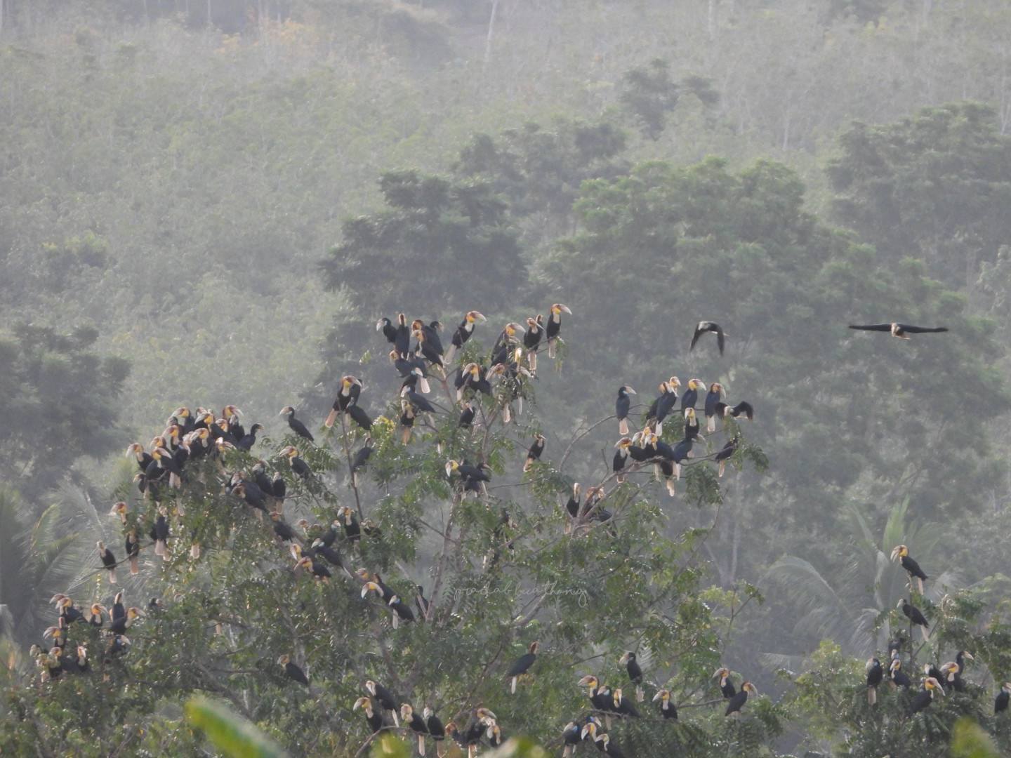 "นกเงือกกรามช้างปากเรียบ" ถือเป็นสัตว์ป่าหายากและมีบทบาทสำคัญในการกระจายเมล็ดพันธุ์ไม้ในผืนป่า การพบเห็นฝูงนกเงือกจำนวนมากพร้อมกันจึงเป็นสัญญาณที่ดีของความสมบูรณ์ทางธรรมชาติในพื้นที่อุทยาน