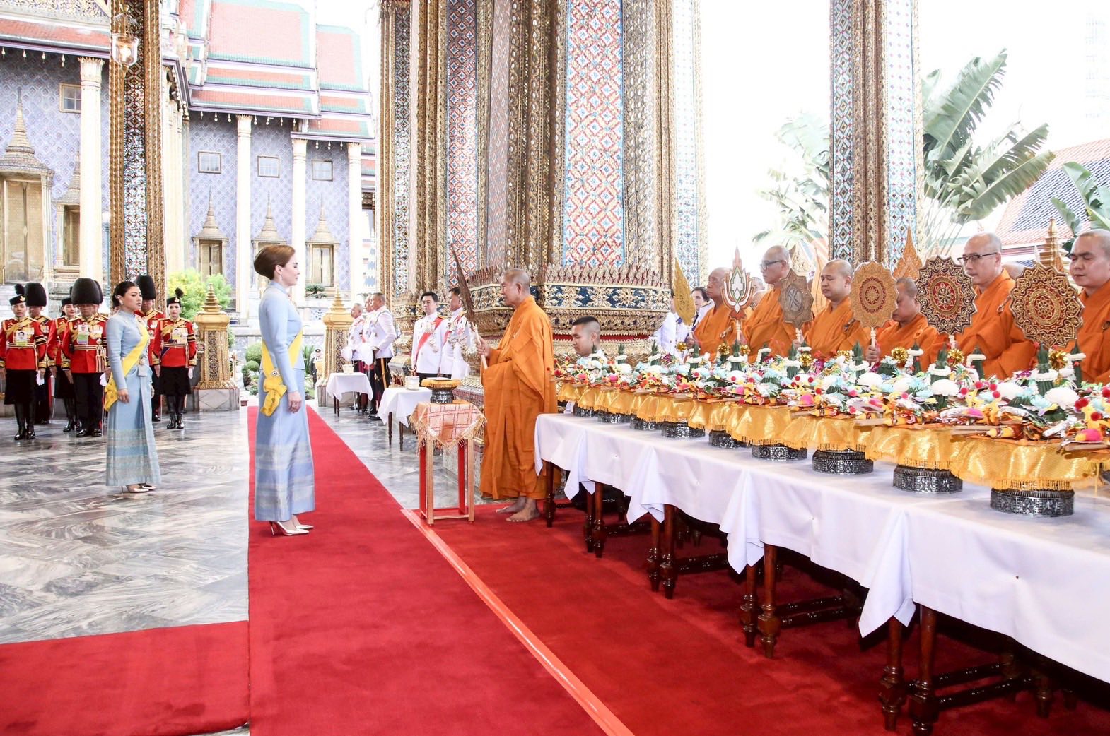 สมเด็จพระนางเจ้าฯ พระบรมราชินี เสด็จพระราชดำเนินไปทรงประเคนจตุปัจจัยไทยธรรมแด่ สมเด็จพระอริยวงศาคตญาณ สมเด็จพระสังฆราช สกลมหาสังฆปริณายก สมเด็จพระราชาคณะ แล้วทรงประเคนจตุปัจจัยไทยธรรมแด่ พระราชาคณะเจ้าคณะรอง และพระราชาคณะ จนครบ ๙๔ รูป เสร็จแล้ว ทรงหลั่งทักษิโณทก พระสงฆ์ถวายอนุโมทนา ถวายอดิเรก ถวายพระพรลา