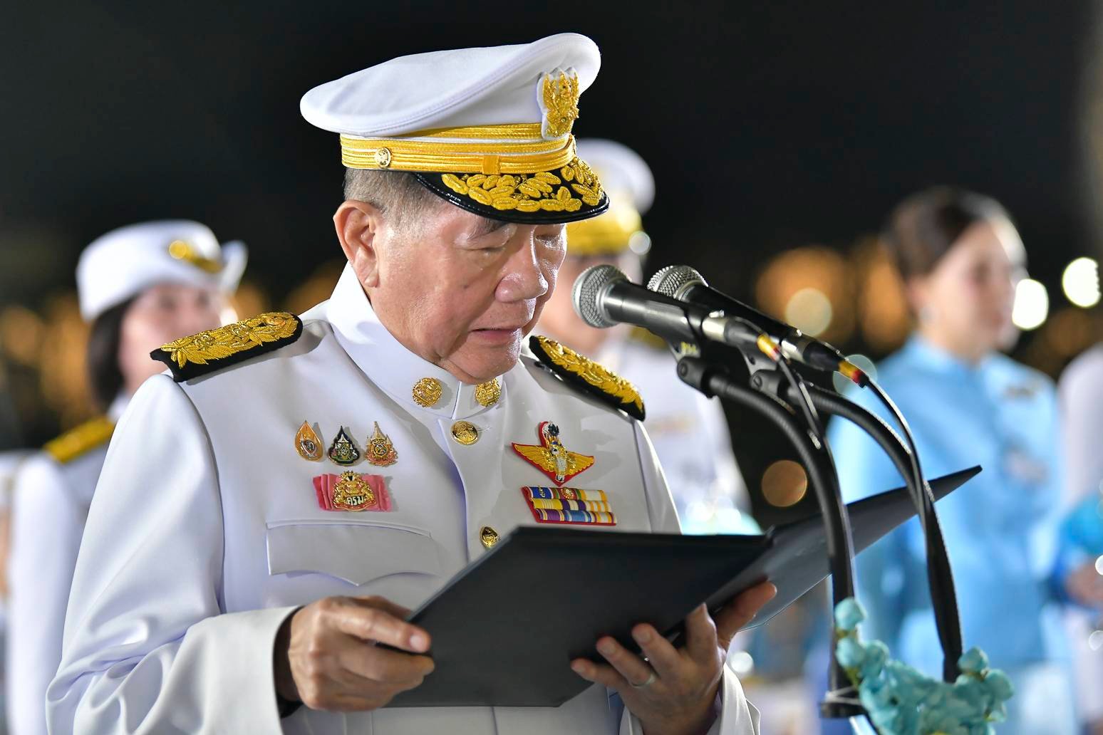 จากนั้น ดนตรีบรรเลงเพลงสรรเสริญพระบารมี รักษาราชการแทนนายกรัฐมนตรี รับมอบโคมเทียนและร่วมร้องเพลงสดุดีพระแม่ไทย 2 จบ แล้วรักษาราชการแทนนายกรัฐมนตรีกล่าวนำ “ทรงพระเจริญ” 3 ครั้ง เสร็จพิธี
