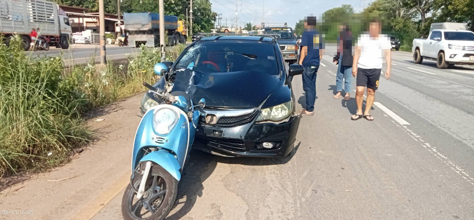 รถนั่งส่วนบุคคลชนกับรถจักรยานยนต์ กลางถนนทางหลวงหมายเลข 33 มีผู้เสียชีวิตเป็นชาวจีน จ.ปราจีนบุรี
