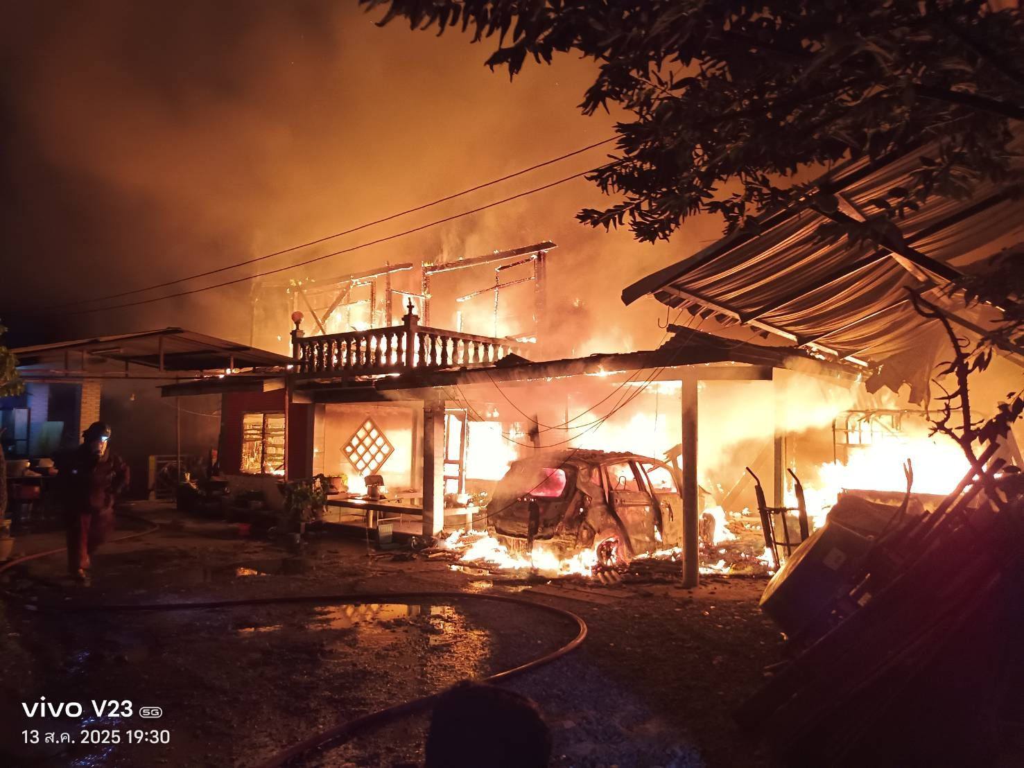 เวลา 19.18 น. วันที่ 13 สิงหาคม 2568 สำนักป้องกันและบรรเทาสาธารณภัย แจ้งเหตุเพลิงไหม้บ้านเรือนประชาชน สถานที่เกิดเหตุ ซอยพระยาสุเรนทร์ 27 ถนนพระยาสุเรนทร์ แขวงบางชัน เขตคลองสามวา กรุงเทพมหานคร