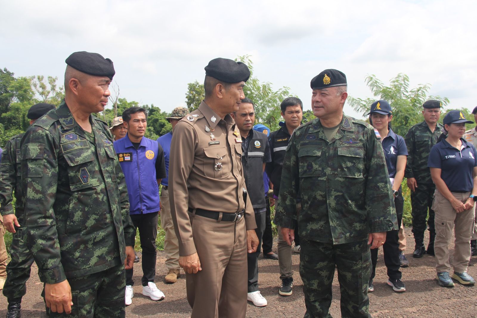 วันนี้ (14 ส.ค.68) เวลา 11.00 น. พล.อ. ศักดิ์สิทธิ์ แสงชนินทร์ ผู้อำนวยการศูนย์ปฏิบัติการทุ่นระเบิดแห่งชาติ ศูนย์บัญชาการทางทหาร กองบัญชาการกองทัพไทย (ผอ.ศทช.ศบท.) พร้อมด้วย พล.ต.ต.ณรงค์ศักดิ์ พรหมทา ผบก.ภ.จว.บุรีรัมย์ ,พ.อ.(พ) สมโชค จันทาสี ผู้บังคับหน่วยปฎิบัติการทุ่นระเบิดด้านมนุษยธรรม 3 Humanitarian Mine Action Unit 3 (ผบ.นปท.3) ,นายเอกวัฒน์ พวงประโคน นายอำเภอบ้านกรวด ร่วมเป็นสักขีพยานในการจัดทำลายทุ่นระเบิดและกระสุนปืนใหญ่ ซึ่งทางเจ้าหน้าที่ นปท.3 ร่วมกับ EOD กก.สืบสวน ภ.จว.บุรีรัมย์ ได้ร่วมกันทำการเก็บกู้ทุ่นระเบิด ลูกกระสุนปืนใหญ่ ลูกจรวด BM 21 และวัตถุระเบิดตกค้างจากเหตุปะทะแนวชายแดนไทย-กัมพูชา ในห้วงวันที่ 24-28 ก.ค.68 ที่ผ่านมา ตกค้างในพื้นที่ อ.บ้านกรวด แต่ไม่ทำงาน(ไม่ระเบิด) มาทำลายด้วยวิธีจุดระเบิด