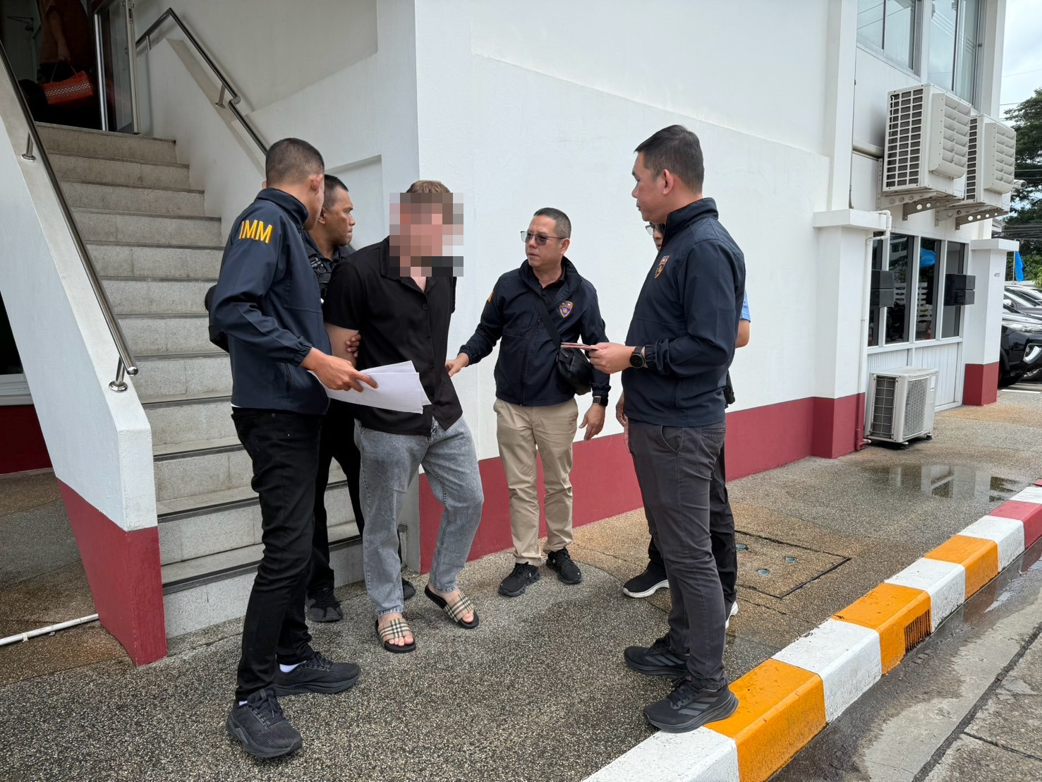 จากการสืบสวน เจ้าหน้าที่ทราบว่า ผู้ต้องหามากบดานอยู่ในพื้นที่ จึงได้ร่วมกันวางแผนให้มารายงานตัวที่ตรวจคนเข้าเมืองจังหวัดภูเก็ต เมื่อผู้ต้องหาเดินทางมาถึง เจ้าหน้าที่จึงแสดงหมายจับและควบคุมตัวทันที