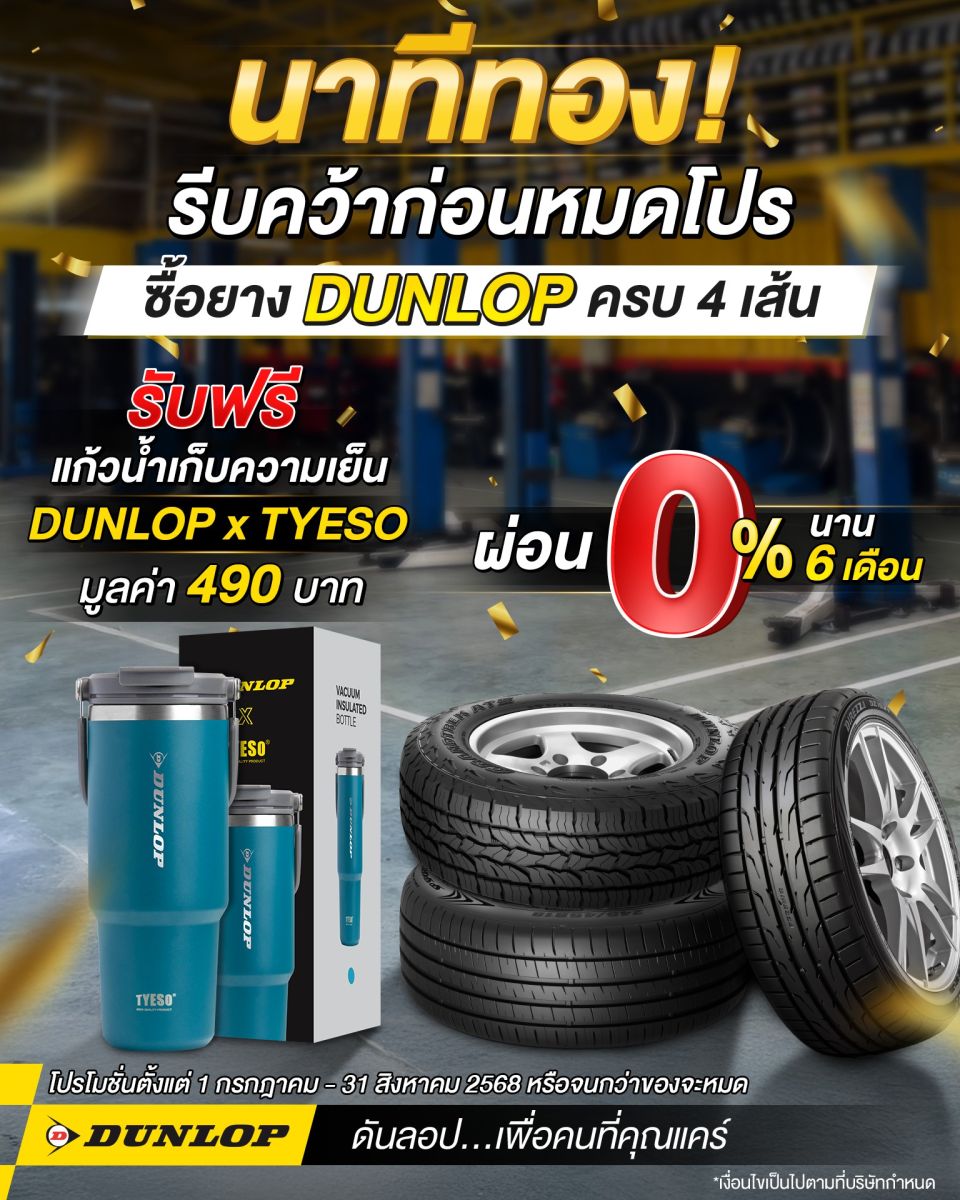 - โปรโมชั่นมีเวลาจำกัด ถึง 31 สิงหาคม 2568 นี้ หรือจนกว่าของจะหมด! หากเพื่อนๆ มีแพลนกำลังจะเปลี่ยนยาง รีบแวะไปที่ DUNLOP Shop ใกล้บ้านด่วน!