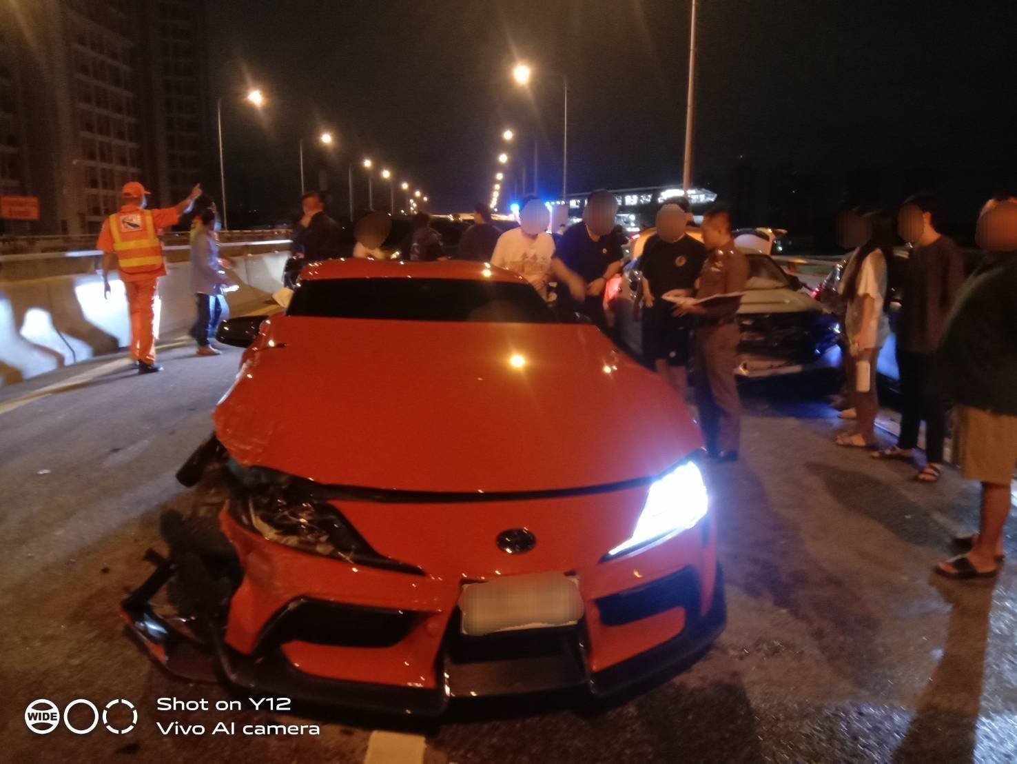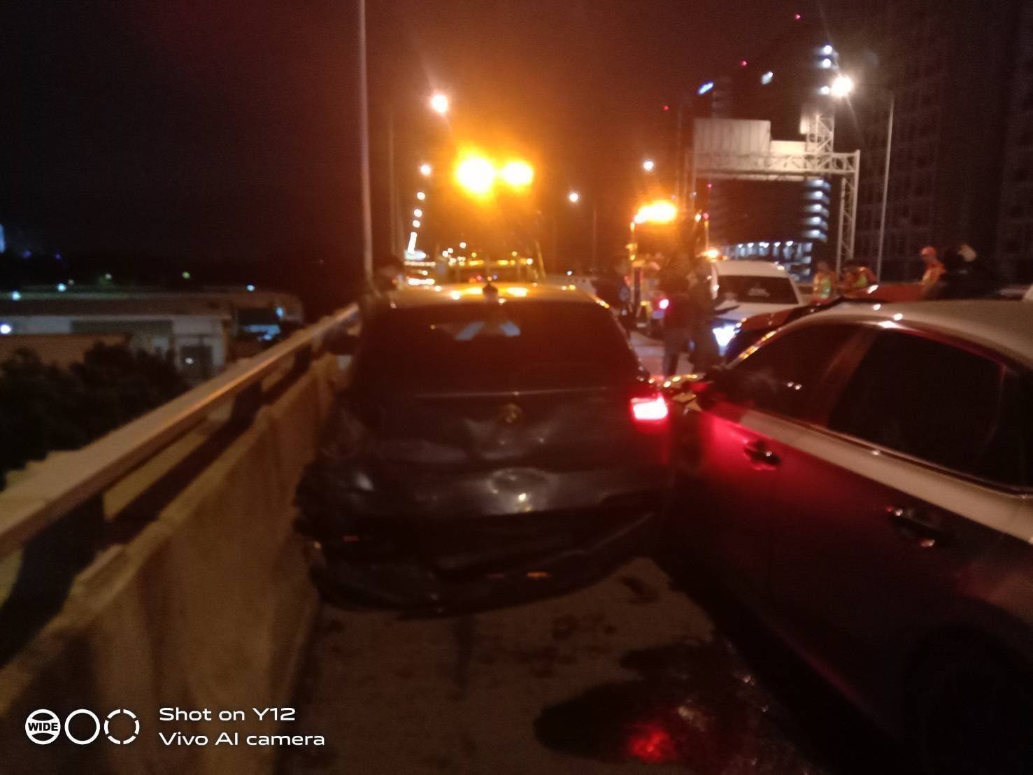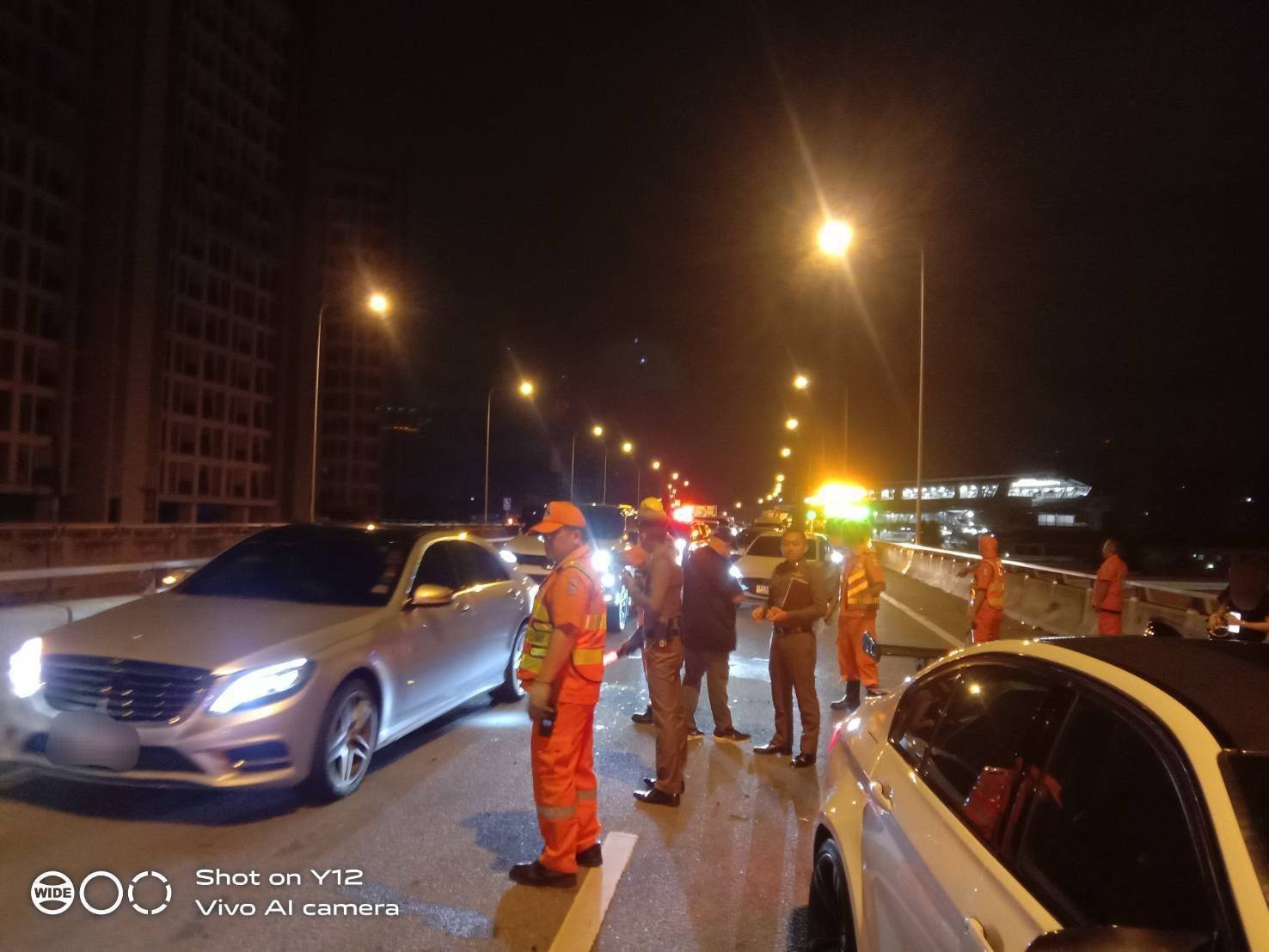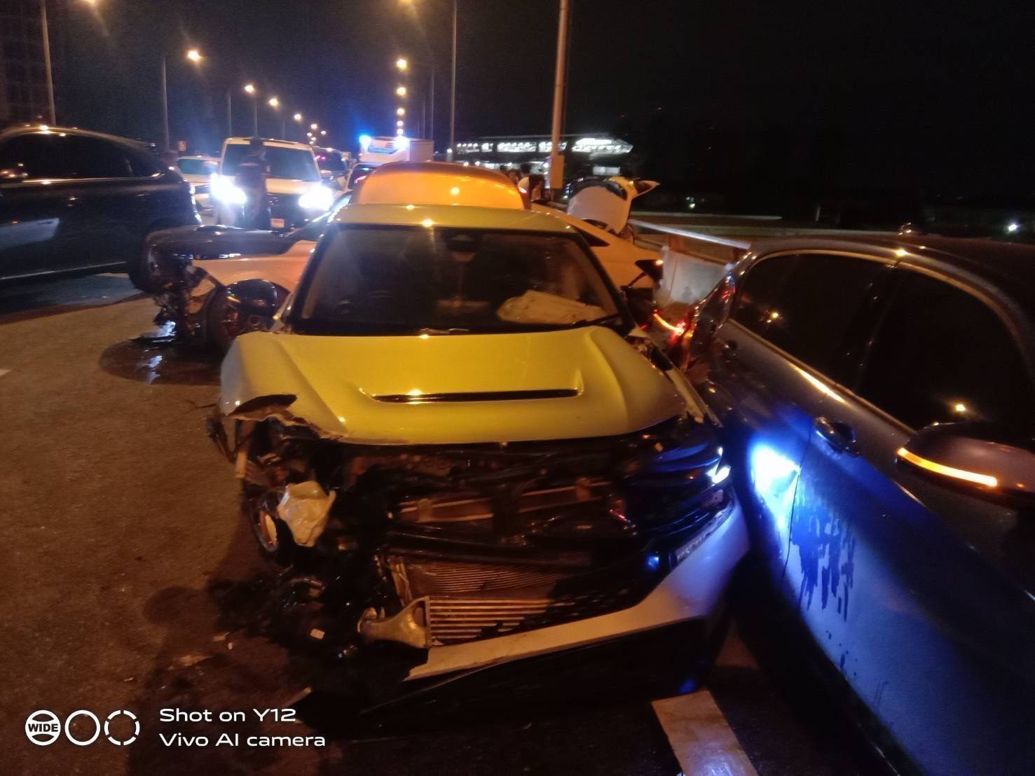 เจ้าหน้าที่ตำรวจพร้อมหน่วยกู้ภัยการทางพิเศษเร่งเข้าตรวจสอบ พบรถยนต์เสียหายรวมทั้งสิ้น 11 คัน มีผู้ได้รับบาดเจ็บเล็กน้อยจำนวน 3 ราย เจ้าหน้าที่ตำรวจได้ตรวจสอบที่เกิดเหตุ และตรวจวัดระดับแอลกอฮอล์ของผู้ขับขี่ทั้งหมด ผลการตรวจไม่พบปริมาณแอลกอฮอล์ในร่างกาย