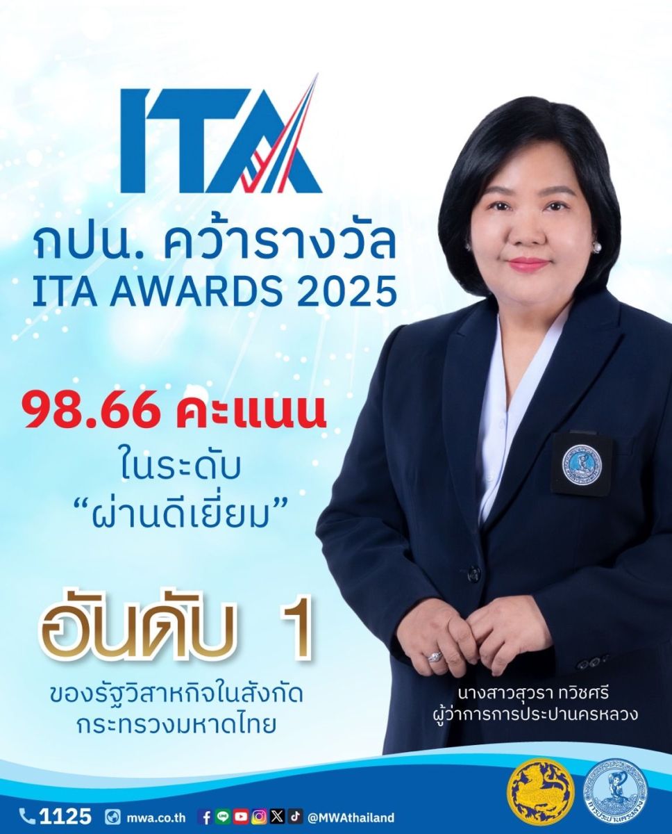 การประปานครหลวง (กปน.) คว้ารางวัล ITA AWARDS 2025 โดยได้รับผลการประเมินคุณธรรมและความโปร่งใสในการดำเนินงานของหน่วยงานภาครัฐ ประจำปีงบประมาณ พ.ศ. 2568 ในระดับ "ผ่านดีเยี่ยม" ด้วยคะแนน 98.66 คะแนน จัดเป็นอันดับที่ 5 จาก 51 หน่วยงานรัฐวิสาหกิจ และอันดับที่ 1 ของรัฐวิสาหกิจในสังกัดกระทรวงมหาดไทย
