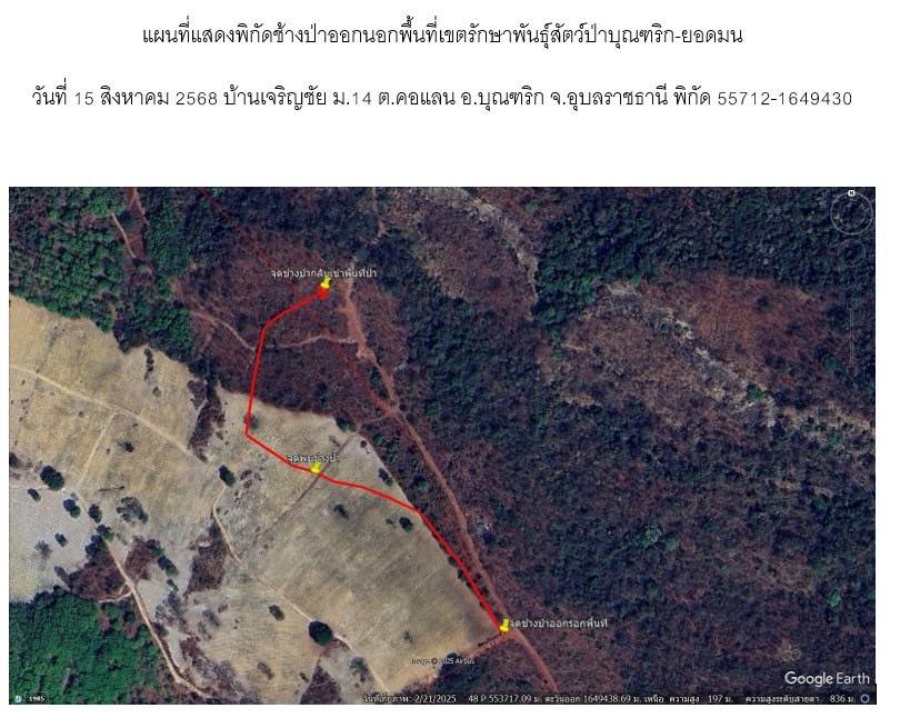 เมื่อวันที่ 15-17 สิงหาคม 2568 ที่ผ่านมา นายอัศนัย นิลพุดซา หัวหน้าเขตรักษาพันธุ์สัตว์ป่าบุณฑริก-ยอดมน ได้นำทีมเจ้าหน้าที่ชุดผลักดันช้างป่าเข้าตรวจสอบและเฝ้าระวังช้างป่าที่ออกนอกพื้นที่อนุรักษ์ สร้างความเสียหายให้กับพืชผลทางการเกษตรของชาวบ้าน เจ้าหน้าที่ได้รับแจ้งจากชาวบ้านใน 2 จุด ได้แก่ บ้านป่าเลา (ภูงอย) หมู่ 6 ตำบลโนนก่อ อำเภอสิริธร ซึ่งพบช้างป่า 1 ตัว เข้าไปหากินในสวนยางพาราและไร่มันสำปะหลัง ทีมเจ้าหน้าที่ได้เข้าสำรวจและเฝ้าระวังตั้งแต่เวลา 20.00 - 23.00 น. ก่อนจะพบช้างป่าตามที่ได้รับแจ้ง อีกจุดคือที่ บ้านเจริญชัย หมู่ 14 ตำบลคอแลน อำเภอบุณฑริก พบช้างป่าฝูงใหญ่ถึง 20 ตัว ออกมาหากินในพื้นที่เกษตรกรรมของชาวบ้าน เจ้าหน้าที่จึงต้องเฝ้าระวังอย่างใกล้ชิดตั้งแต่เวลา 23.30 - 06.00 น. เพื่อป้องกันความเสียหายที่อาจเกิดขึ้น