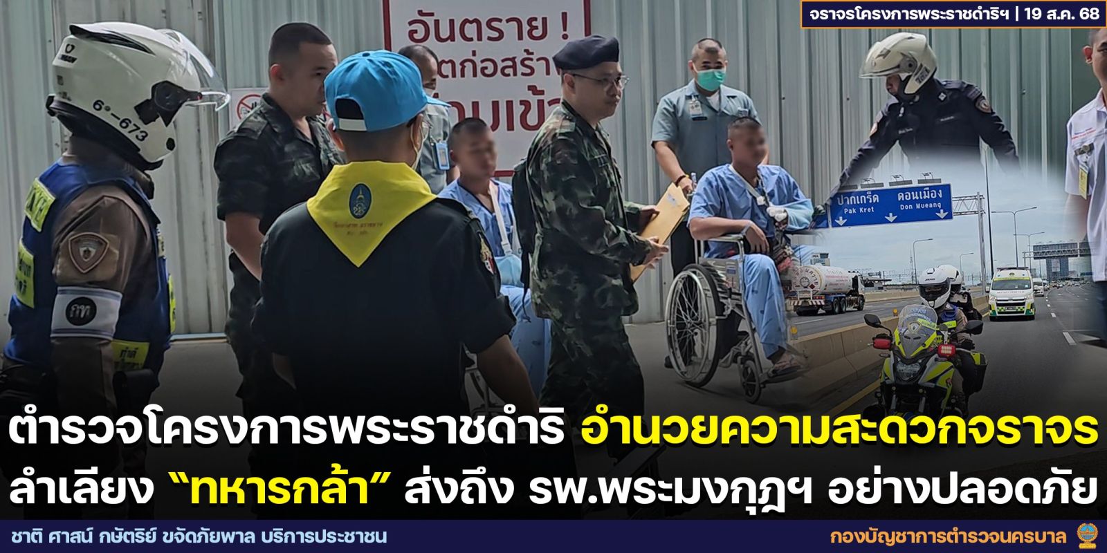 จากนั้น เจ้าหน้าที่ตำรวจโครงการพระราชดำริ เจ้าหน้าที่สารวัตรทหารบก ได้เคลียร์เส้นทาง และอำนวยความสะดวกตลอดเส้นทาง จนถึงที่หมายในเคลื่อนย้าย โดยใช้เส้นทางจาก กองการบิน ศูนย์การเคลื่อนย้าย กรมการขนส่งทหารบก ดอนเมือง ขึ้นยกระดับโทลเวย์ > เชื่อมด่วนดินแดง > ต่างระดับมักกะสัน > ลงพหลโยธิน 1 วนอนุสาวรีย์ ที่หมาย รพ.พระมงกุฏเกล้า ใช้เวลาประมาณ 20 นาที