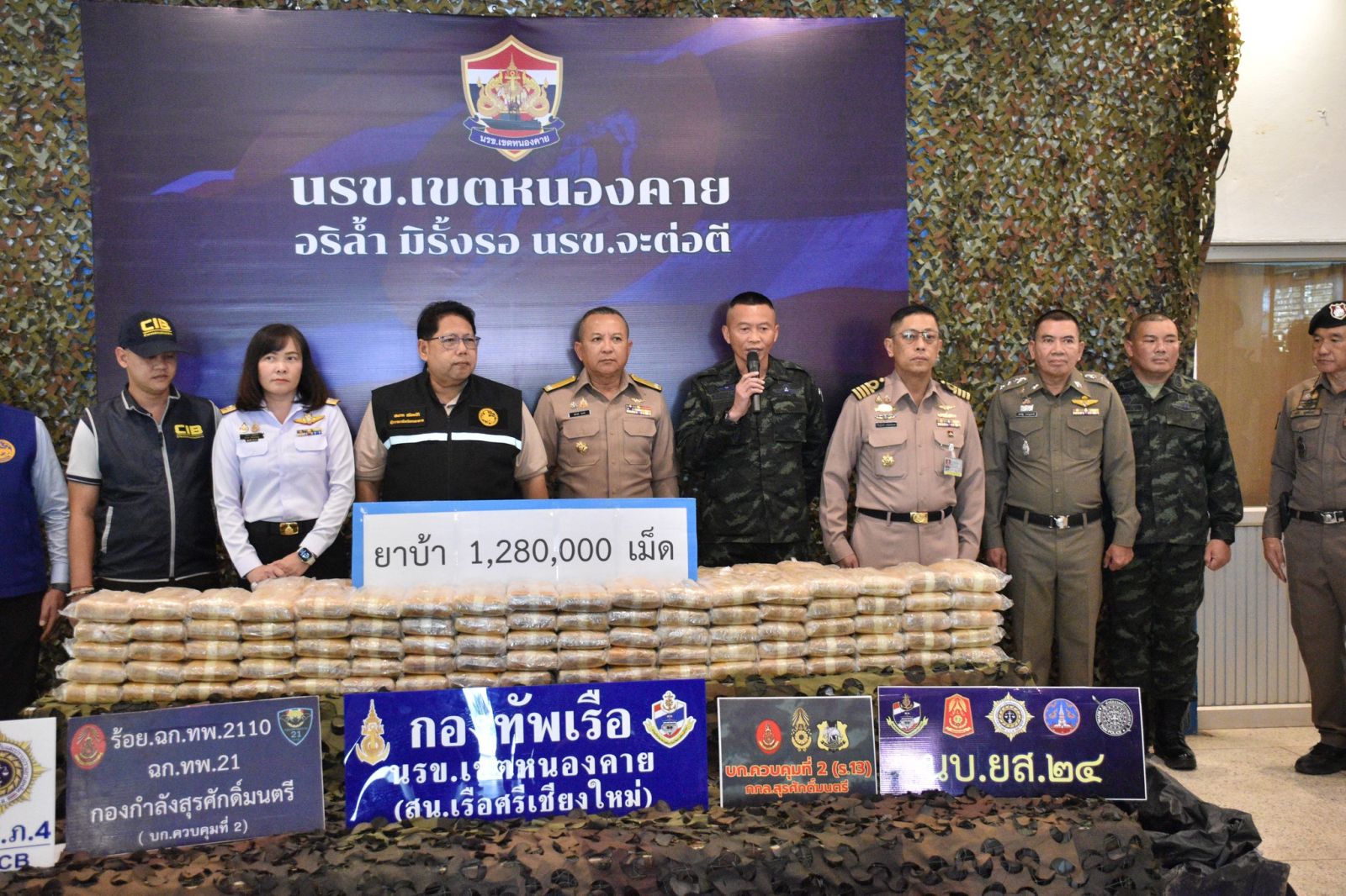 กองกำลังสุรศักดิ์มนตรี ร่วมกับ จังหวัดหนองคาย แถลงข่าวการสกัดกั้นตรวจยึดยาบ้า จำนวน 1,280,000 เม็ด ในพื้นที่ อำเภอท่าบ่อ จังหวัดหนองคาย