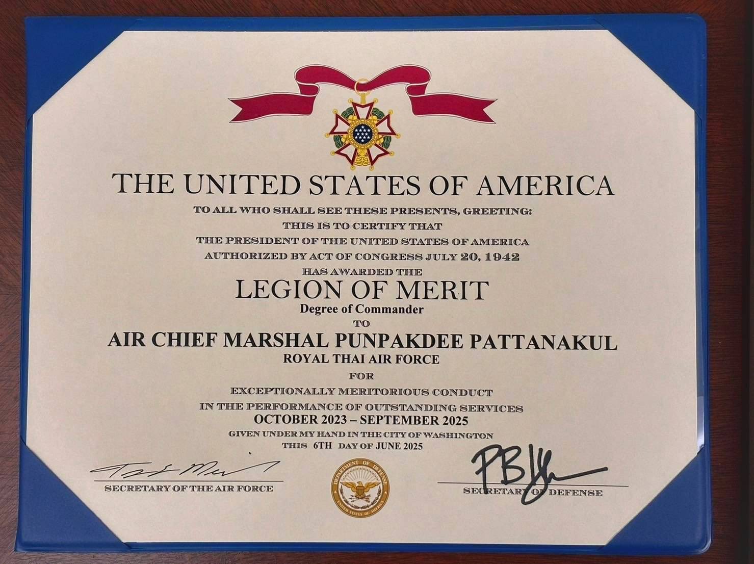 เกียรติยศแห่งมิตรภาพไทย–สหรัฐฯ ผบ.ทอ. เยือนเพนตากอน รับมอบเครื่องอิสริยาภรณ์สูงสุด “Legion of Merit” กระชับความสัมพันธ์ สานต่อความร่วมมือด้านความมั่นคงในภูมิภาค