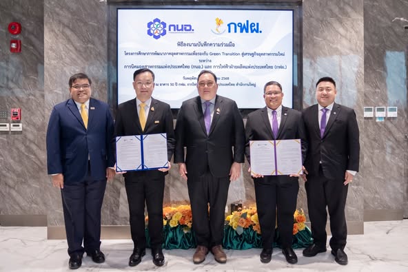 การนิคมอุตสาหกรรมแห่งประเทศไทย (กนอ.) และ การไฟฟ้าฝ่ายผลิตแห่งประเทศไทย (กฟผ.) ได้ลงนามในบันทึกความร่วมมือ (MOU) “โครงการศึกษาการพัฒนาภาคอุตสาหกรรม เพื่อรองรับ Green Transition สู่เศรษฐกิจอุตสาหกรรมใหม่” ผนึกกำลังขับเคลื่อนอนาคตอุตสาหกรรมไทยให้เติบโตอย่างยั่งยืน พิธีลงนามจัดขึ้นเมื่อวันที่ 21 สิงหาคม 2568 ที่ผ่านมา ณ การไฟฟ้าฝ่ายผลิตแห่งประเทศไทย โดยมี นายเริงฤทธิ์ กุศลกรรมบถ รองผู้ว่าการ (ประจำสำนักผู้ว่าการ) การนิคมอุตสาหกรรมแห่งประเทศไทย และ นายธวัชชัย สำราญวานิช รองผู้ว่าการยุทธศาสตร์ การไฟฟ้าฝ่ายผลิตแห่งประเทศไทย เป็นผู้ลงนาม โดยมีนายสุเมธ ตั้งประเสริฐ ผู้ว่าการการนิคมอุตสาหกรรมแห่งประเทศไทย เป็นสักขีพยานในการลงนามครั้งนี้