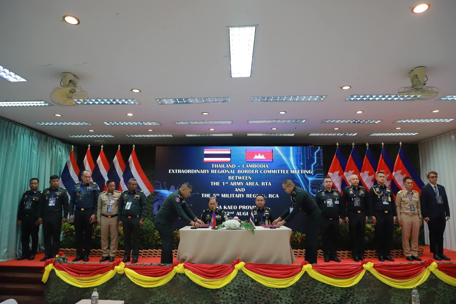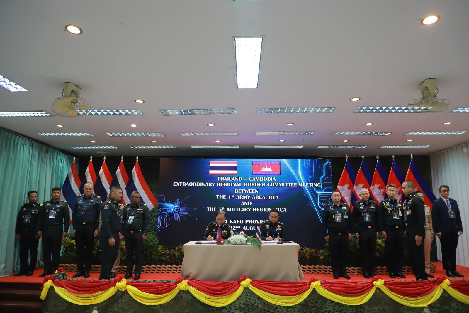 จากนั้น มีการลงนามเห็นชอบร่างบันทึก และ แลกแฟ้มเอกสารระหว่างสองฝ่าย แล้วเสร็จในเวลา 02.19 น. โดยฝ่ายกัมพูชาเดินทางกลับประเทศ และเตรียมนำผลสรุปที่ได้ หารือกันต่อในการประชุมระดับแม่ทัพของทั้งสองฝ่ายในเวลา 10.00น.วันนี้ (22 ส.ค.68)