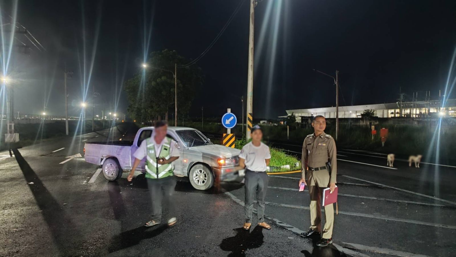 จ.ฉะเชิงเทรา รถกระบะชนกับรถจักรยานยนต์ กลางถนนภายในนิคมอุตสาหกรรม คุณลุงวัย 67 ปีเจ็บสาหัส ก่อนไปเสียชีวิตที่ รพ.