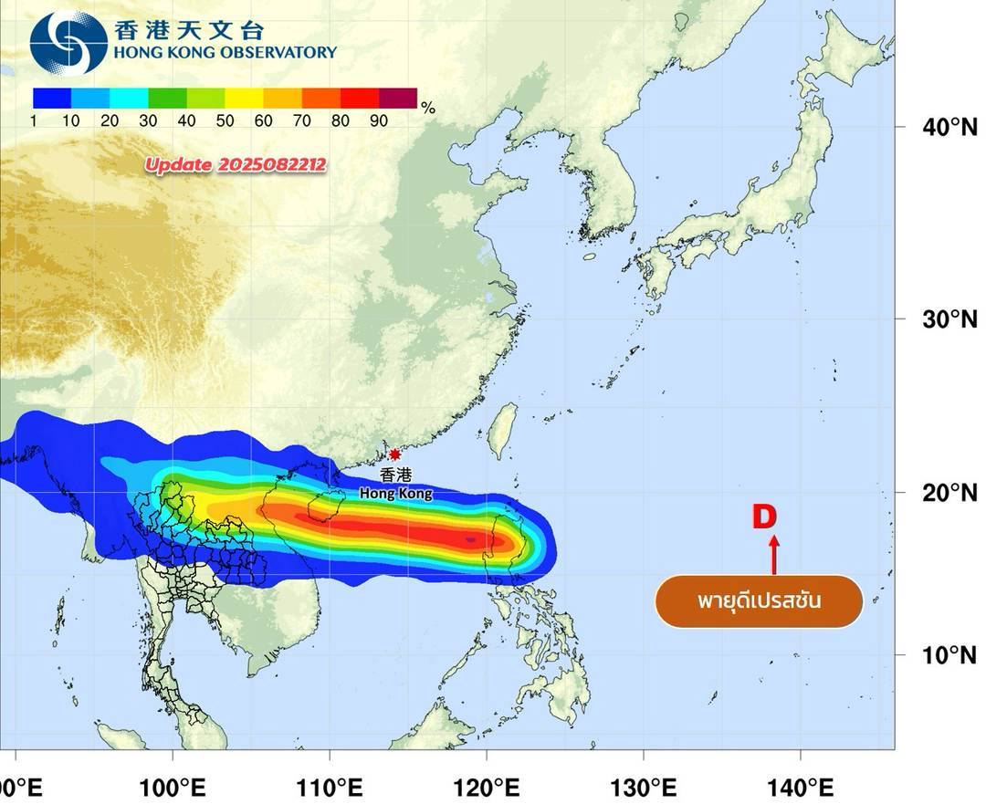 กรมอุตุนิยมวิทยา อัปเดตสถานการณ์พายุเช้าตรู่ วันนี้ 23 ส.ค.68 เวลา 04.00 น. พายุดีเปรสชันบริเวณทะเลจีนใต้ตอนบน ความเร็วลมสูงสุดใกล้ศูนย์กลางประมาณ 55 กิโลเมตรต่อชั่วโมง พายุนี้กำลังเคลื่อนตัวทางทิศตะวันตกด้วยความเร็วประมาณ 30 กิโลเมตรต่อชั่วโมง (เคลื่อนที่เร็ว) และมีแนวโน้มจะทวีกำลังแรงขึ้นเป็นพายุโซนร้อนในวันนี้ คาดว่าจะเคลื่อนขึ้นฝั่งบริเวณประเทศเวียดนามและประเทศลาวตอนบน ในช่วงวันที่ 25–26 ส.ค. 68 ประกอบกับมรสุมตะวันตกเฉียงใต้ที่พัดปกคลุมทะเลอันดามัน