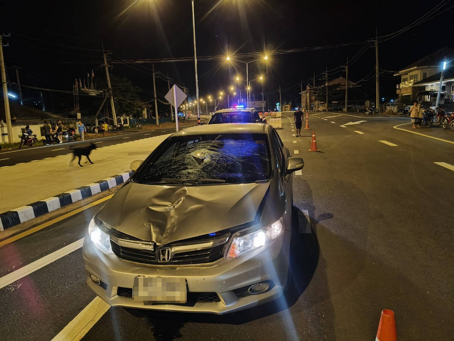 ที่เกิดเหตุ พบรถนั่งส่วนบุคคล ฮอนด้า สีเทา ป้ายทะเบียน อุบลราชธานี สภาพฝากระโปรงหน้าและกระจกหน้ารถ มีสภาพการชนได้รับความเสียหาย ห่างออกไปพบร่างของผู้เสียชีวิต 1 ราย ตรวจสอบเป็นผู้ชายไทย อายุประมาณ 75 ปี