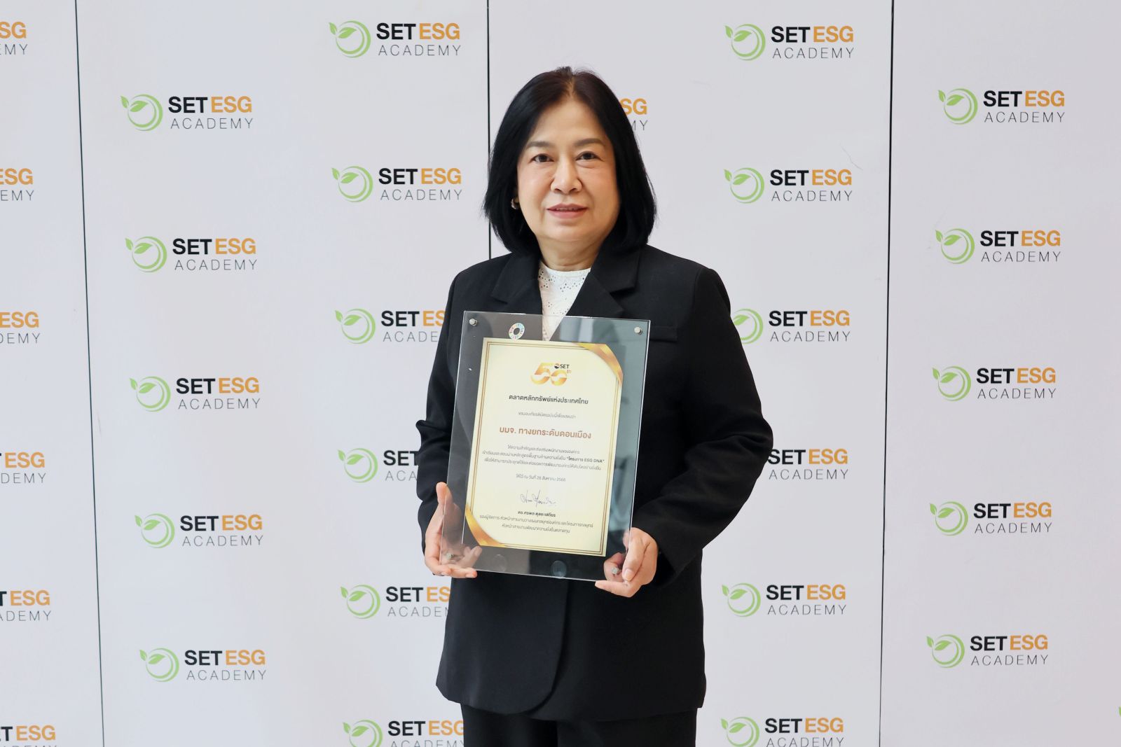 เมื่อเร็วๆ นี้ คุณอัจฉรา เจริญพร (คนขวา) ผู้ช่วยกรรมการผู้จัดการอาวุโส สายงานพัฒนาความยั่งยืนองค์กร บมจ.ทางยกระดับดอนเมือง หรือ DMT รับมอบเกียรติบัตรโครงการ “ESG DNA ชุดความรู้ด้านความยั่งยืนสำหรับบุคลากรทุกระดับในองค์กร” จัดโดยตลาดหลักทรัพย์แห่งประเทสไทย เพื่อแสดงว่า DMT ให้ความสำคัญและส่งเสริมพนักงานขององค์กรเข้าใจหลักการพัฒนาองค์กรตามกรอบ ESG และปลูกฝัง DNA ด้านความยั่งยืน เพื่อให้สามารถประยุกต์ใช้และต่อยอดการพัฒนาองค์กรให้เติบโตอย่างยั่งยืน ทั้งนี้ โครงการ ESG DNA เป็นรางวัลสำหรับองค์กรที่มีพนักงานผ่านหลักสูตรพื้นฐานด้านความยั่งยืนเกินกว่า 70% โดยได้รับเกียรติจาก ดร.ศรพล ตุลยะเสถียร (คนซ้าย) รองผู้จัดการ ตลาดหลักทรัพย์แห่งประเทศไทย เป็นผู้มอบ ณ หอประชุมศุกรีย์ แก้วเจริญ ตลาดหลักทรัพย์แห่งประเทศไทย