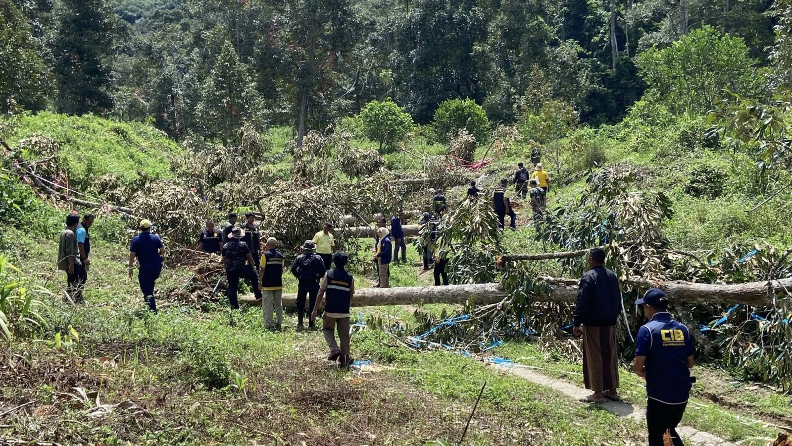 ปลัดอำเภอธารโต พร้อม จนท.อุทยานแห่งชาติบางลาง และผู้นำชุมชน เข้าตรวจสอบสวนทุเรียนใน ต.บ้านแหร อ.ธารโต จ.ยะลา หลังถูกช้างป่าบุกรุกทำลายต้นทุเรียนอายุกว่า 50 ปี ล้มระเนระนาด ซึ่งเป็นปัญหายืดเยื้อที่ยังไม่สามารถหาทางแก้ไขได้