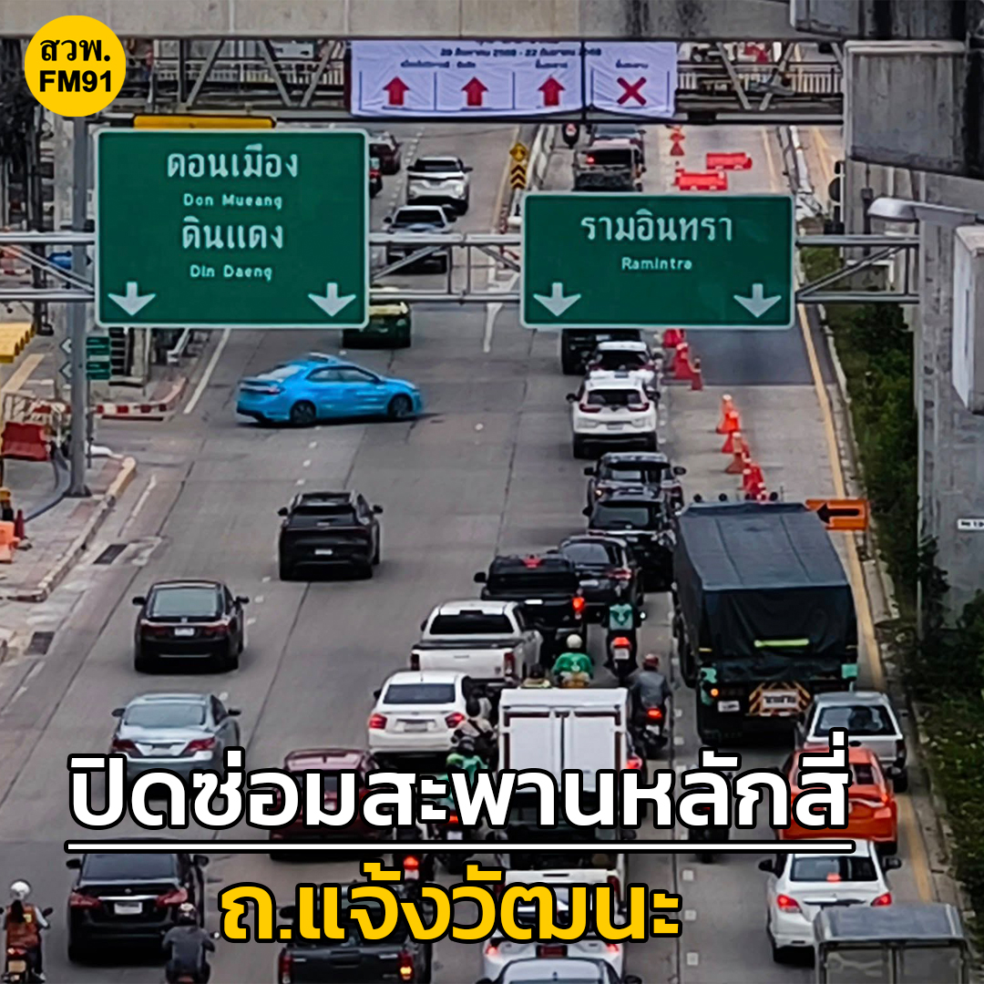 กรณีปิดซ่อมรอยต่อฯ สะพานข้ามแยกหลักสี่ ปิดทีละ 1 ช่องทาง เริ่มช่องทางขวา *เฉพาะวันศุกร์ เวลา 22.00 น. ถึงวันจันทร์ เวลา 04.00 น.