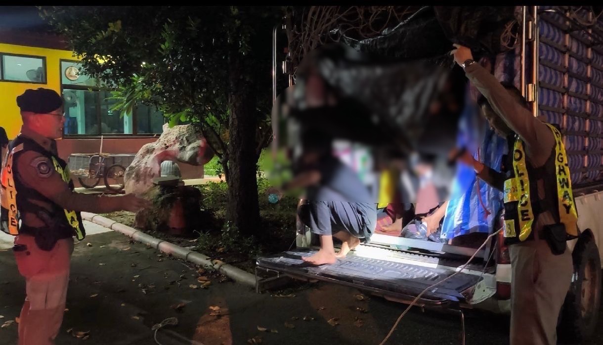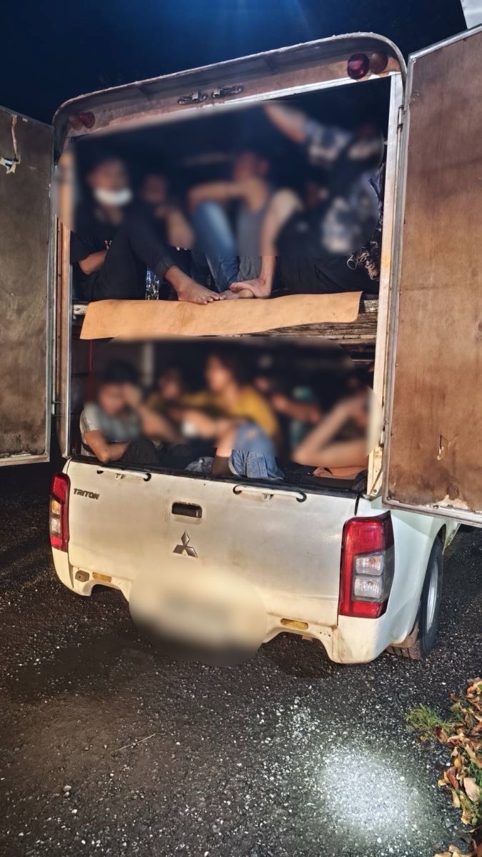 จากการตรวจสอบรถคันแรก พบมีชายไทยเป็นคนขับ ข้างคนขับพบผู้หญิงคล้ายแรงงานต่างด้าว 3 คนนั่งอยู่ด้วย ซึ่งจากการตรวจสอบไม่มีเอกสารการเดินทางที่ถูกต้อง และเมื่อเปิดตู้ทึบด้านหลังออกพบแรงงานต่างด้าวอัดแน่นกันมาอีก 37 คน รวมแรงงานต่างด้าวทั้งหมดในรถคันนี้ 40 คน เป็นชาย 22 คน และหญิง 18 คน