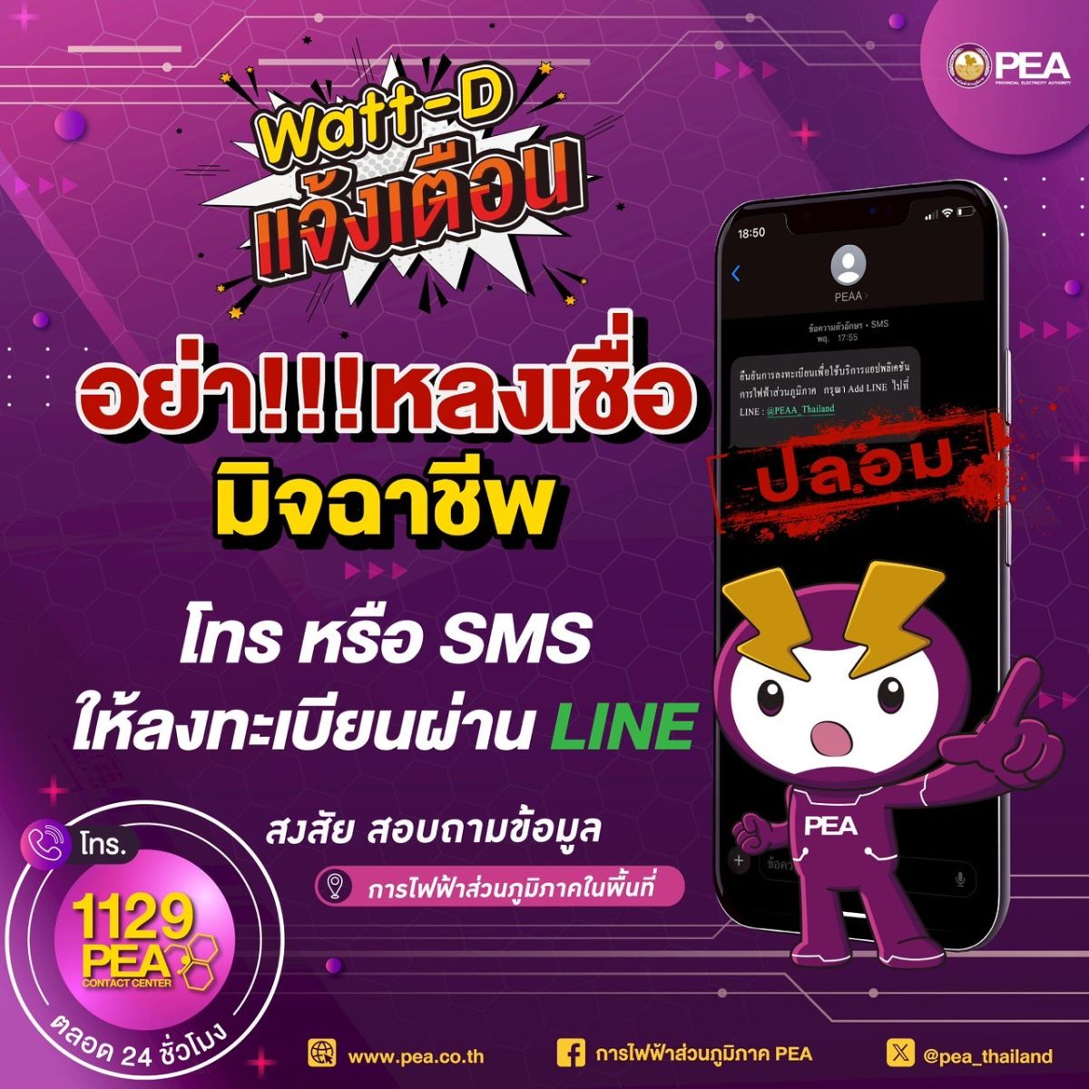 หากมีข้อสงสัย สามารถสอบถามข้อมูล ติดต่อ ได้ที่ สำนักงานการไฟฟ้าส่วนภูมิภาคในพื้นที่ หรือ 1129 PEA Contact Center (ตลอด 24 ชั่วโมง)
