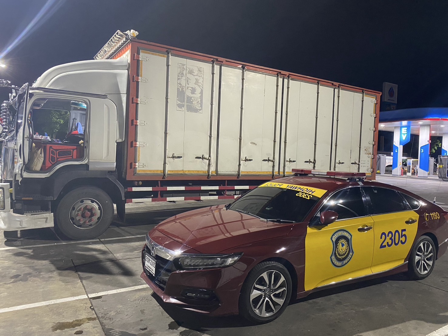 เจ้าหน้าที่ตำรวจชุดจับกุมจึงได้วางกำลังเฝ้าสังเกตบริเวณริมถนนเพชรเกษมฝั่งขาลงใต้ โดยได้ประสานกับตำรวจทางหลวงประจวบคีรีขันธ์ เพื่อทำการติดตามตรวจสอบรถยนต์บรรทุกทั้งสองคันดังกล่าว จนกระทั่งพบรถต้องสงสัย คันแรก ขับเข้าไปจอดบริเวณปั๊มน้ำมัน ปตท. ม.12 ถ.เลี่ยงเมือง (ฝั่งขาลงใต้) ต.ทับใต้ อ.หัวหิน จ.ประจวบคีรีขันธ์ โดยที่ รถยนต์บรรทุกทะเบียน คันที่สอง จอดอยู่ภายในปั้มน้ำมัน พีที สาขาทับใต้ (ฝั่งขาขึ้น กทม.) หมู่ 12 ต.ทับใต้ อ.หัวหิน จ.ประจวบคีรีขันธ์ ซึ่งรถยนต์บรรทุกทั้งสองคันดังกล่าว มีตำหนิรูปพรรณตรงกันกับที่เจ้าหน้าที่ตำรวจทำการสืบสวนทราบ ชุดจับกุมจึงเชื่อว่ารถยนต์บรรทุกทั้งสองคันน่าจะมีสิ่งผิดกฎหมายหรือยาเสพติดซุกซ่อนอยู่ภายใน จึงได้ทำการนำกำลังเข้าตรวจสอบรถยนต์บรรทุกทั้งสองคัน