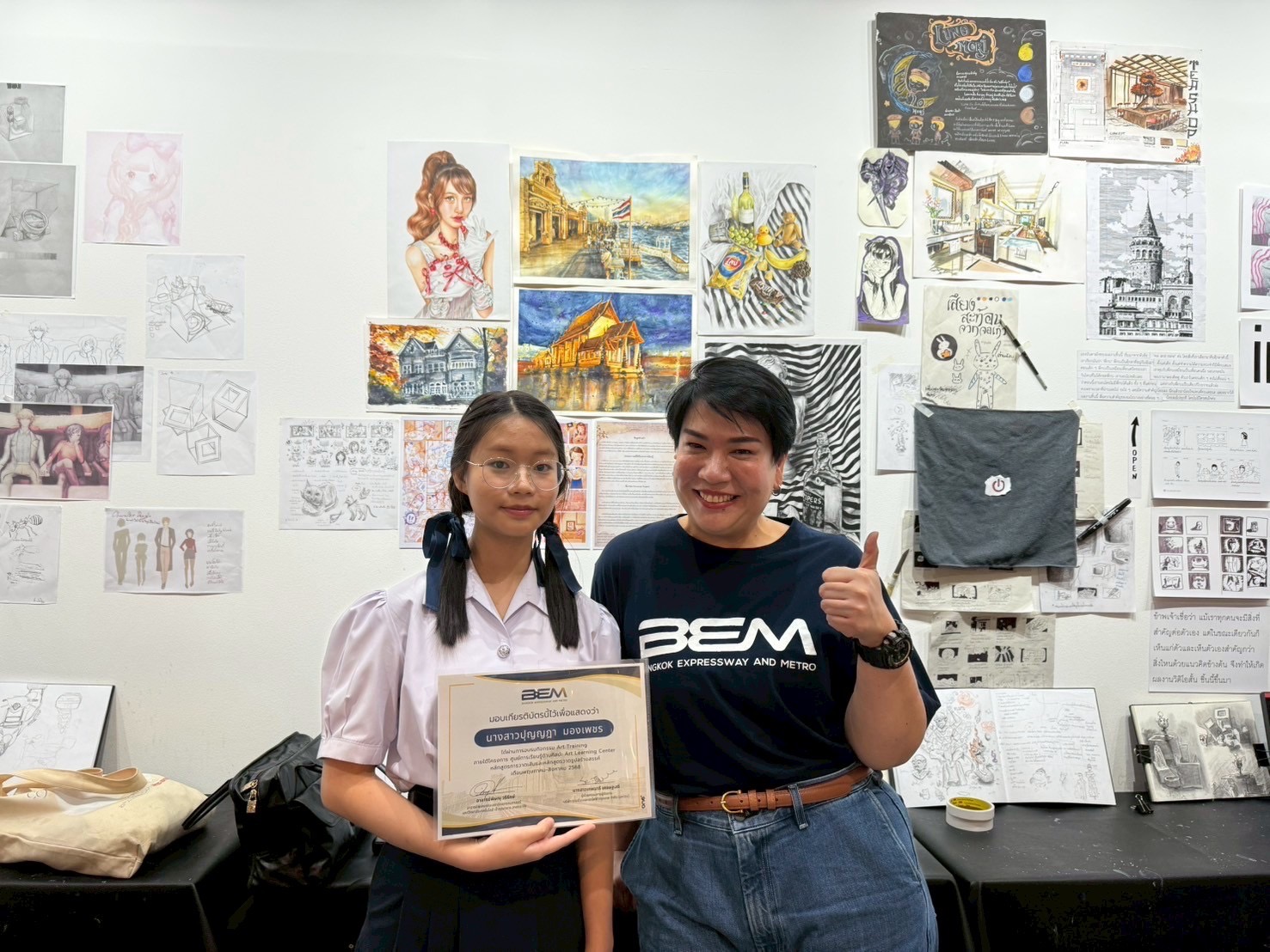 เมื่อเร็วๆ นี้ บริษัท ทางด่วนและรถไฟฟ้ากรุงเทพ จำกัด (มหาชน) หรือ BEM ได้มอบประกาศนียบัตรแก่นักเรียนที่ได้รับทุนการศึกษาเข้าร่วม Art Training ภายใต้โครงการ Art Learning Centre @ MRT สถานีพหลโยธิน ซึ่งเป็นหนึ่งในกิจกรรมที่จัดขึ้นเพื่อส่งเสริมทักษะด้านศิลปะให้แก่เยาวชนที่สนใจ และต้องการฝึกฝนฝีมือเพื่อเข้าศึกษาต่อในระดับมหาวิทยาลัย ผ่านการเรียนการสอนเข้มข้นตลอดระยะเวลา 4 เดือน จาก อาจารย์บุญกว้าง นนท์เจริญ ศิลปินสีน้ำระดับมาสเตอร์ และ อาจารย์พิษณุ วริรักษ์ อาจารย์พิเศษ จากคณะสถาปัตยกรรมศาสตร์ มหาวิทยาลัยเทคโนโลยีเจ้าคุณทหารลาดกระบัง ณ Art Learning Centre Metro Art @MRT สถานีพหลโยธิน