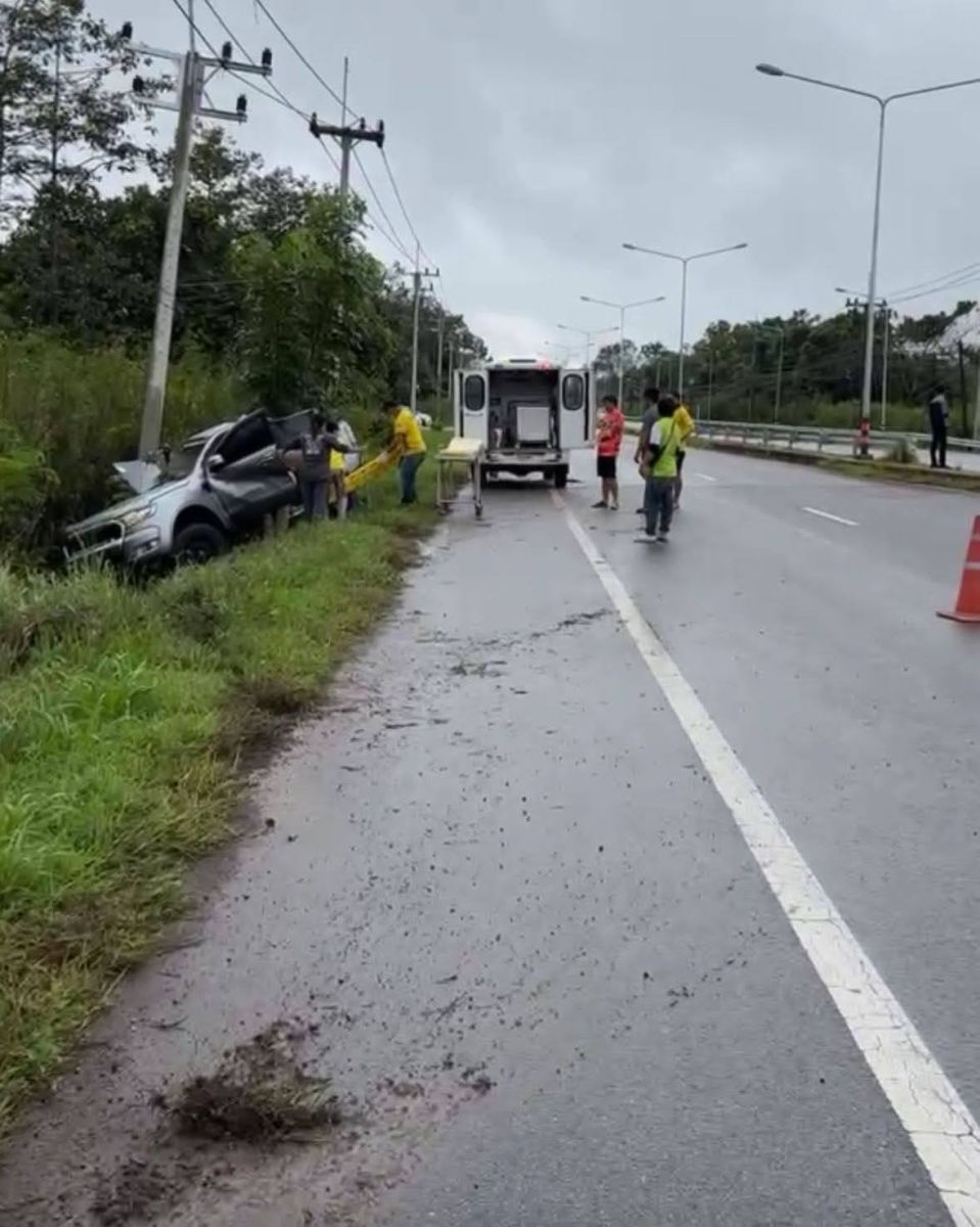 รถกระบะเสียหลักฟาดเสาไฟฟ้าริมถนนสายนครพนม - ธาตุพนม บาดเจ็บ 1 และเสียชีวิต 1 ราย จ.นครพนม