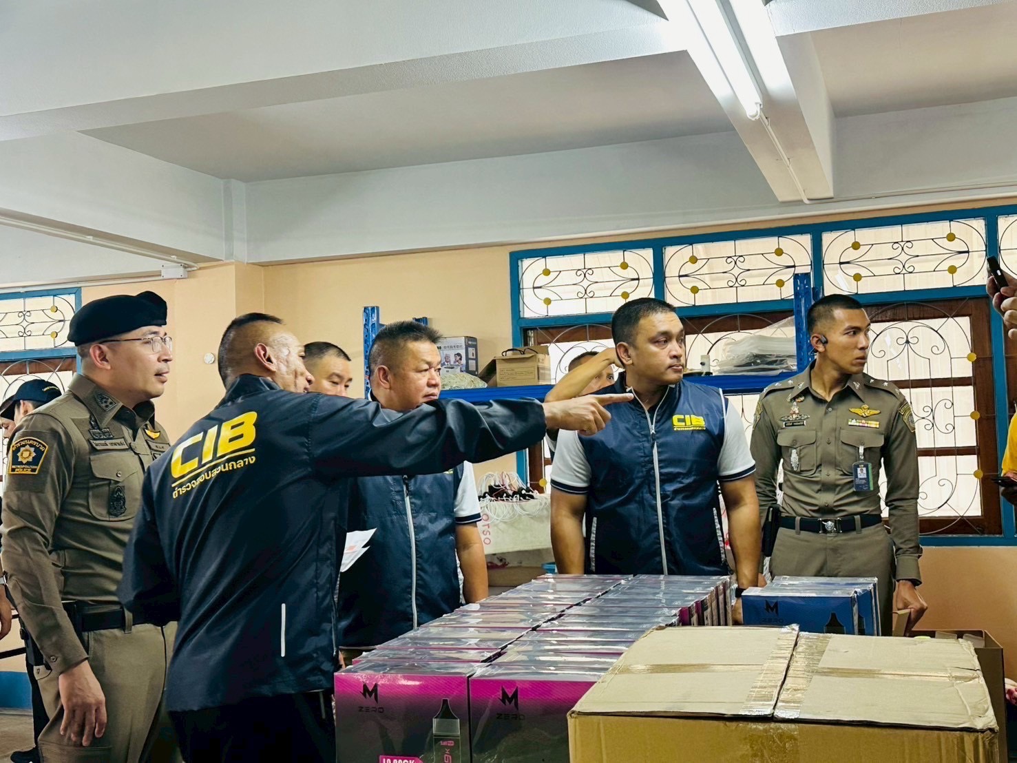 วันที่ 9 ก.ย.68 พล.ต.ต.ทัศน์ภูมิ จารุปรัชญ์ ผบก.ปอศ.พร้อมด้วย พ.ต.อ.นฤพนธ์ กรุณา ผกก.2 บก.ปอศ., นำกำลังเข้าตรวจสอบโกดังแห่งหนึ่ง ภายในซอยสะแกงาม แขวงแสมดำ เขตบางขุนเทียน กทม. จับกุม นายติง (นามสมมุติ) อายุ 27 ปี สัญชาติจีน นายลี่ (นามสมมุติ) อายุ 37 ปี สัญชาติจีน และคนงานชาวพม่าอีก 11 ราย พร้อมของกลาง บุหรี่ไฟฟ้า บรรจุกล่องพร้อมจำหน่าย 20,000 ชิ้น และ อุปกรณ์การผลิต ถังบรรจุน้ำยา และ อุปกรณ์ส่วนควบอื่นๆ อีกจำนวนมาก