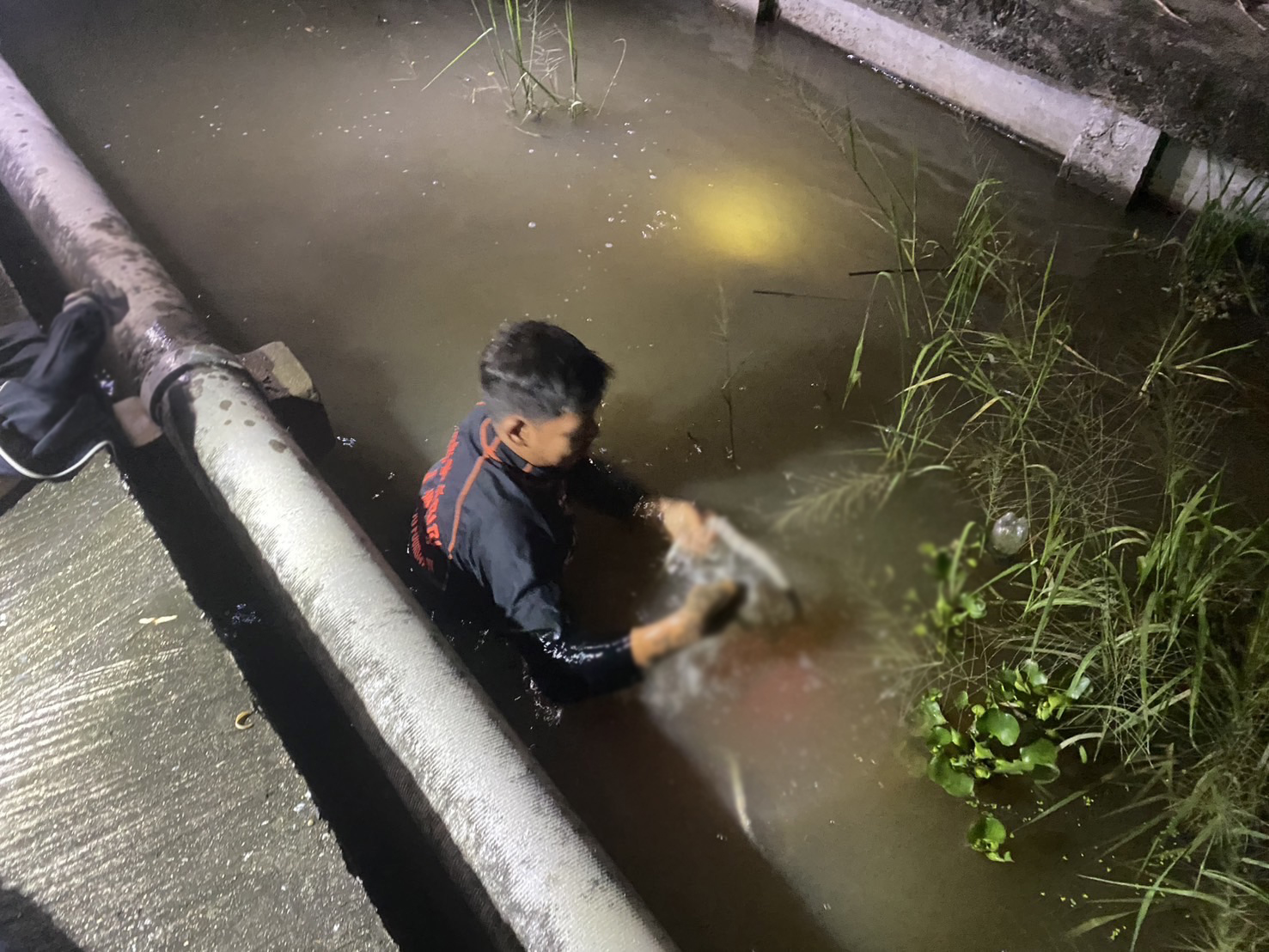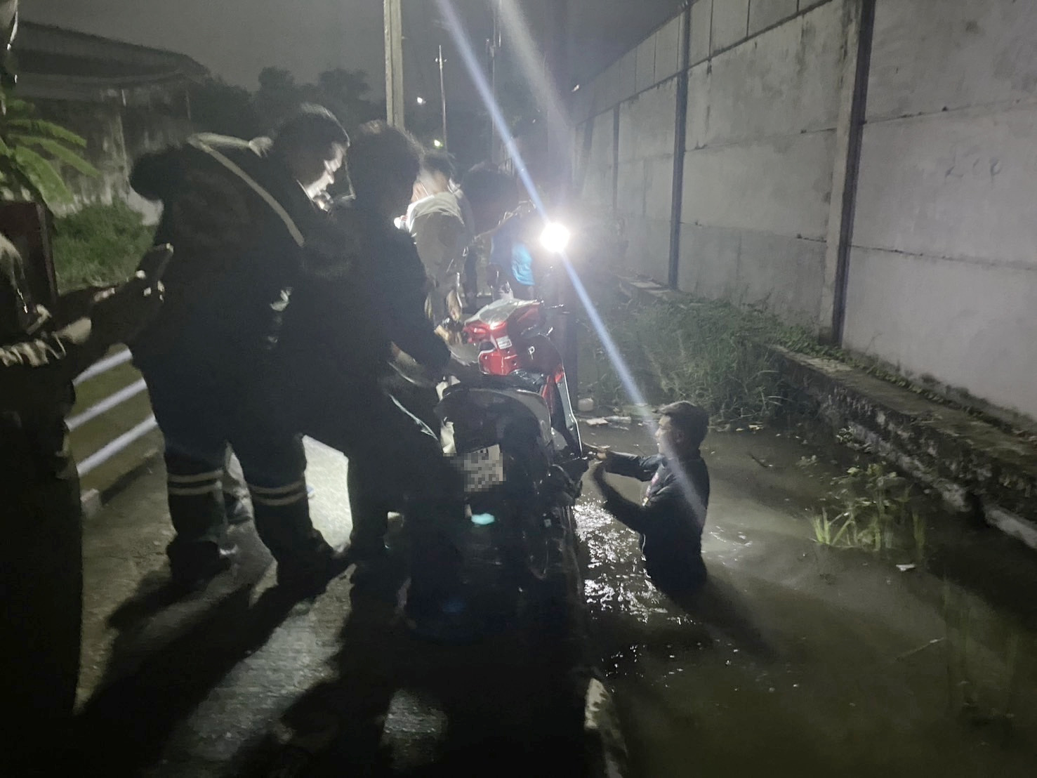 ตรวจสอบที่เกิดเหตุ พบร่างของ ชาย อายุ 29 ปี ชาวสัญชาติเมียนมา ถูกนำตัวขึ้นมาจากน้ำ โดยพบว่าเสียชีวิตแล้ว และพบรถจักรยานยนต์ 1 คันจมอยู่ในน้ำเช่นกัน อาสาสมัครดำเนินการนำขึ้นมาตรวจสอบ เป็นรถยี่ห้อฮอนด้า สีแดง-ขาว ป้ายทะเบียน กทม.