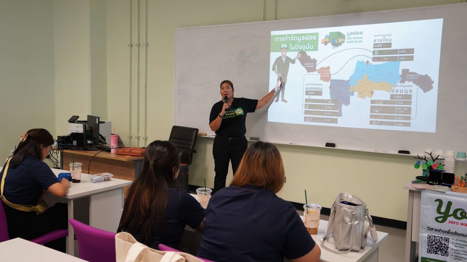 การรถไฟฟ้าขนส่งมวลชนแห่งประเทศไทย (รฟม.) โดย นางสาวจิรฐา วัฒนประดิษฐ์ ผู้อำนวยการสำนักสื่อสารองค์กร รฟม. นำกลุ่มพนักงานต้นแบบด้านการจัดการสำนักงานสีเขียว MRTA Green Office Hero ภายใต้โครงการสำนักงานสีเขียว ประจำปี 2568 เข้าศึกษาดูงานด้านการจัดการขยะจาก YOLO Zero Waste วิสาหกิจเพื่อสังคมด้านสิ่งแวดล้อม โดยเข้ารับฟังการบรรยายด้านการจัดการขยะในองค์กร ณ อาคารศูนย์ซ่อมบำรุงคลองบางไผ่ และศึกษาดูงานด้านการแปรรูปผลิตภัณฑ์จากขยะฝาขวดน้ำพลาสติก ณ ชุมชนไทรน้อย ซึ่งในโอกาสนี้ รฟม. ได้มอบฝาขวดน้ำพลาสติก จากกิจกรรม MRTR 3R จำนวน 36 กิโลกรัม ให้แก่ YOLO เพื่อนำไปใช้แปรรูปสร้างมูลค่าให้กับขยะอีกด้วย