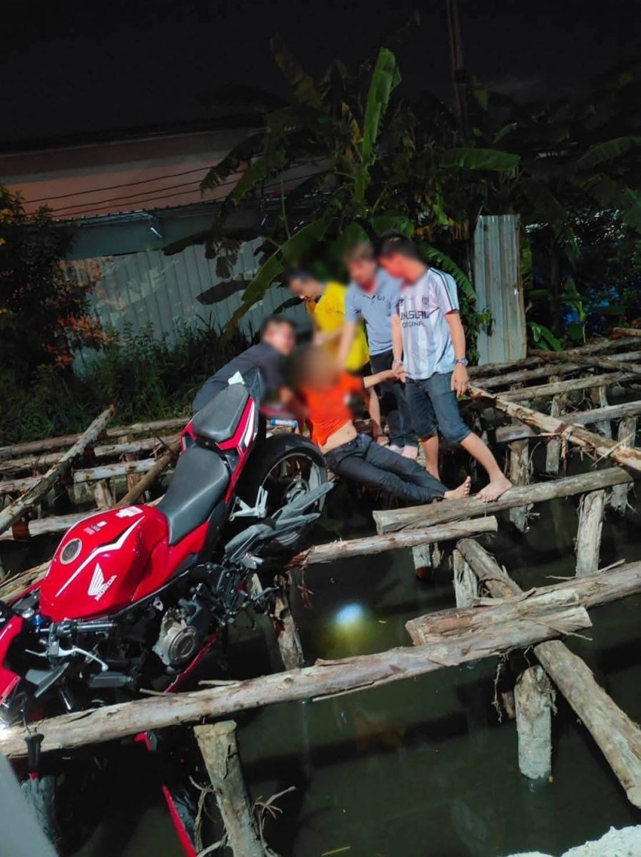 หนุ่มเมียนมา ขับขี่รถจักรยานยนต์เสียหลักล้ม ร่างกระเด็นตกคลอง ได้รับบาดเจ็บ พลเมืองดีช่วยดึงขึ้นฝั่ง ก่อนรถกู้ชีพนำส่ง รพ.