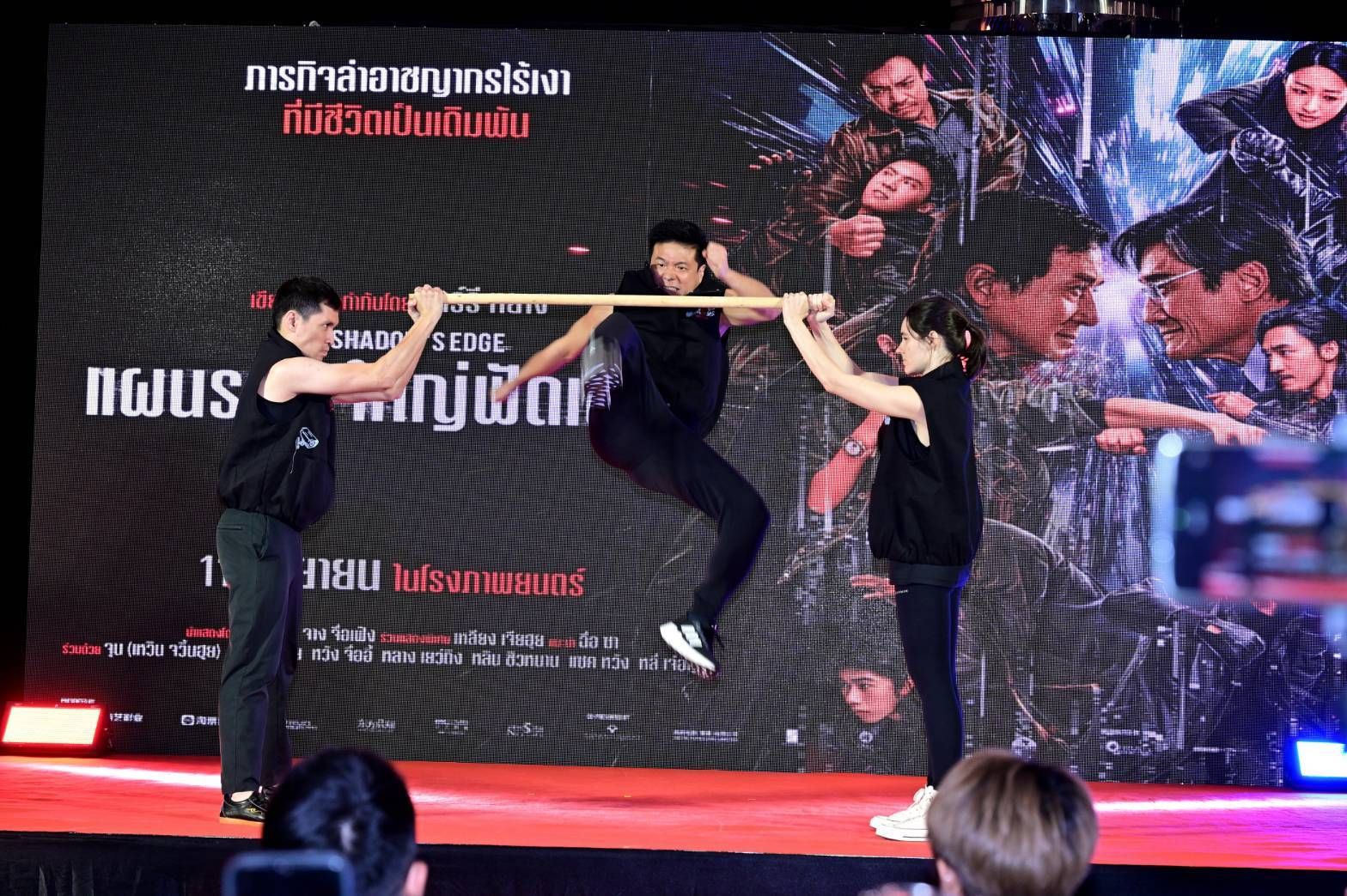 งาน Thailand Gala Premiere จัดขึ้นอย่างยิ่งใหญ่ที่ลานอินฟินิซิตี้ พารากอนซีนีเพล็กซ์ โดยมี เจิ้น วีระกฤษณ์ วัชระศรีวราห์ ทำหน้าที่พิธีกร เปิดเวทีด้วยการแสดงกังฟูสุดตื่นตา จากโรงเรียนไทย–จีนเส้าหลินกังฟู ก่อนเข้าสู่ช่วงสำคัญกับการกล่าวต้อนรับ คุณสุรเชษฐ์ อัศวเรืองอนันต์ ประธานเจ้าหน้าที่บริหาร M STUDIO และ คุณจาง จิน (ZHANG Jin) Vice President of the Movie and Overseas Business Group, iQIYI ซึ่งได้ร่วมพูดคุยถึงความร่วมมือครั้งสำคัญระหว่างสองพันธมิตร ในการสร้างเครือข่ายด้านการตลาดและการจัดจำหน่ายคอนเทนต์ครบวงจร เพื่อเชื่อมต่อคอนเทนต์จีนสู่ผู้ชมไทย และผลักดันคอนเทนต์ไทยสู่ตลาดจีน โดยเริ่มต้นด้วย “The Shadow’s Edge แผนระห่ำ ใหญ่ฟัดเดือด”