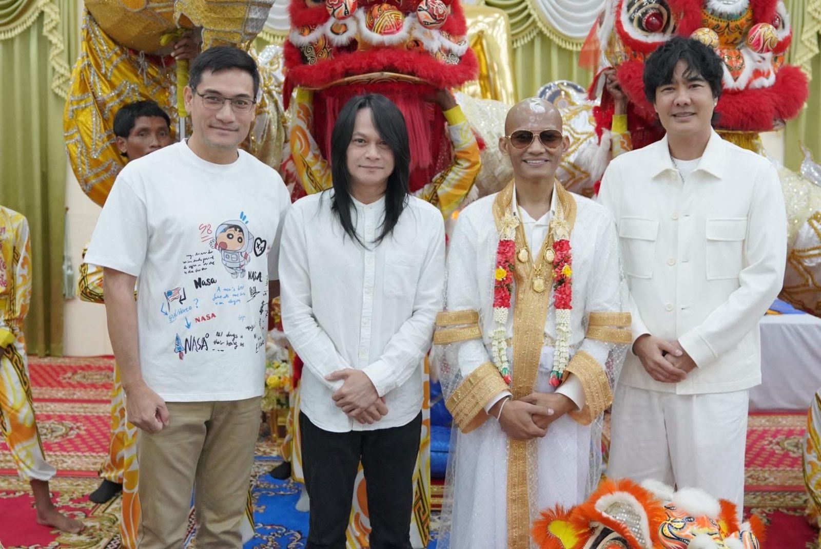 ในพิธีแห่นาค นาคยังได้ขี่ช้างร่วมพิธี ท่ามกลางเพื่อนในวงการบันเทิงที่มาร่วมอนุโมทนาบุญคับคั่ง อาทิ เคลลี่ ธนะพัฒน์, พี สะเดิด, ท็อป จรณ, ตั๊ก บริบูรณ์, เดี่ยว ชูพงษ์, วาม-จิรกิตติ์, น้องหนุ่ยสาวน้อยร้อยโล,จอย ดาวกระจาย ฯลฯ