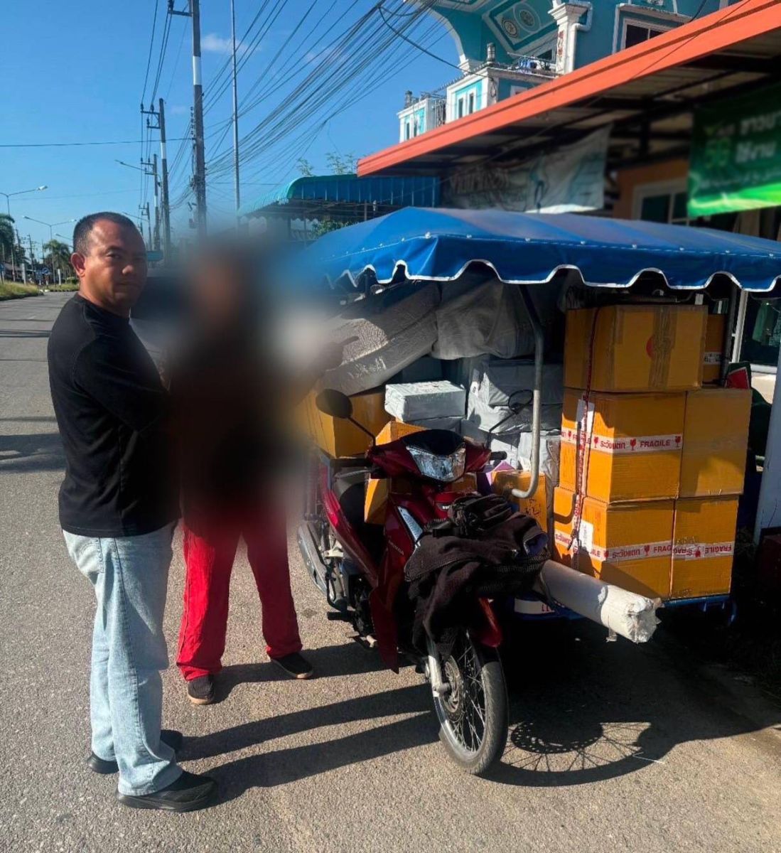 หนุ่มขี่ซาเล้งส่งพัสดุงานเข้า เจอ ตร.เรียกตรวจ พบบุหรี่เถื่อนเพียบ