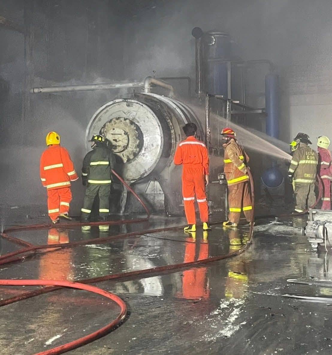ที่เกิดเหตุ พบแสงเพลิงและกลุ่มควันจำนวนมากลุกไหม้บริเวณหม้อต้มน้ำมัน จึงประสานรถน้ำและบรรเทาสาธารณภัยใกล้เคียงเข้าร่วมสนับสนุน โดยใช้เวลาควบคุมเพลิงประมาณ 30 นาทีเพลิงจึงสงบ