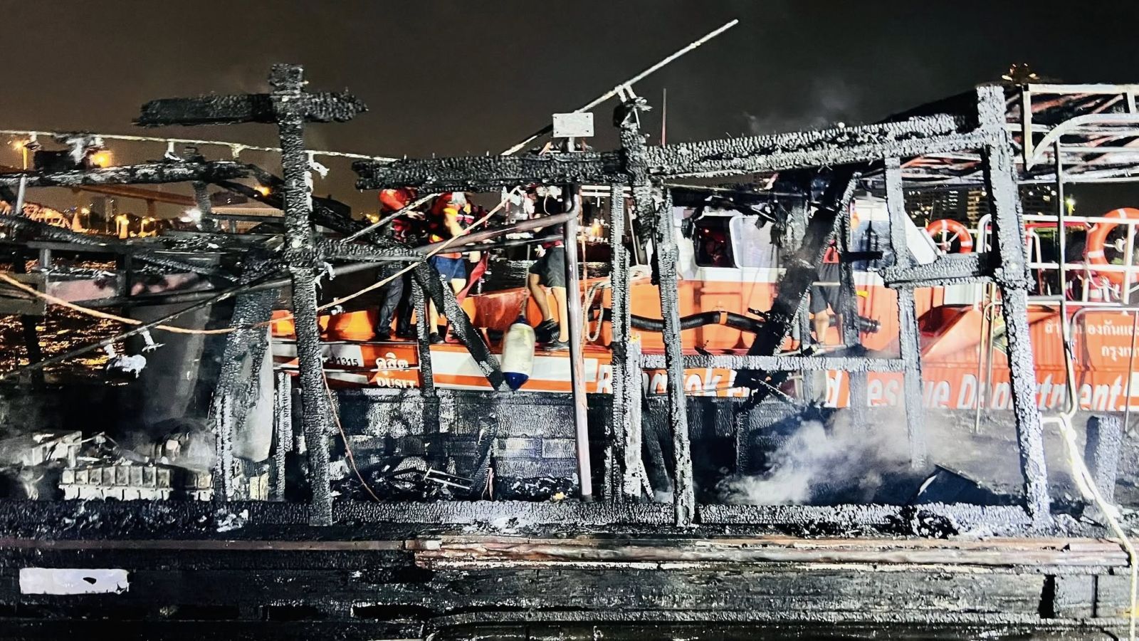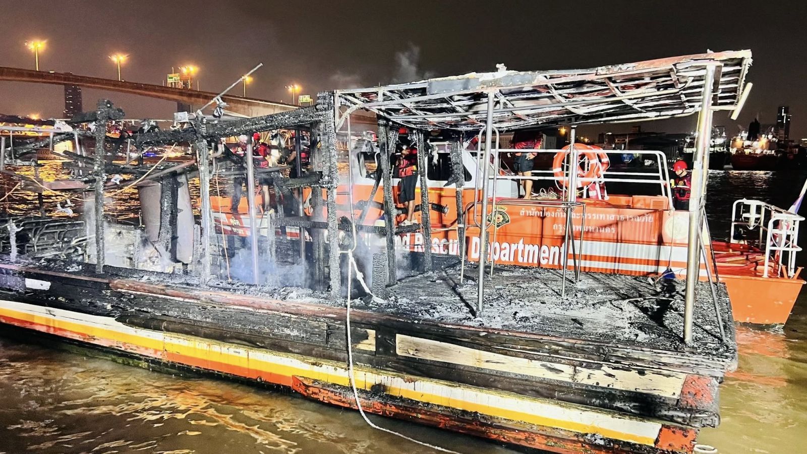 ล่าสุด หลังฝ่ายปฏิบัติการพิเศษและกู้ภัยทางน้ำ สปภ.กทม. นำโดย นายพูนศักด์ วงษ์เสงี่ยม หัวหน้าฝ่ายฯ นำกำลังเจ้าหน้าที่เข้าระงับเหตุเพลิงไหม้เรือด่วนเจ้าพระยา ขณะจอดเก็บอยู่ บริเวณจุดจอดเรือท่าวัดราชสิงขร ริมแม่น้ำเจ้าพระยาฝั่งพระนคร แขวงวัดพระยาไกร เขตบางคอแหลม กรุงเทพมหานคร ร่วมกับทีมดับเพลิงสถานีดับเพลิงและกู้ภัยยานนาวา และทีมกู้ภัย เมื่อช่วงค่ำที่ผ่านมาของวันนี้ (14 กันยายน 2568) จนเพลิงสงบแล้วนั้น