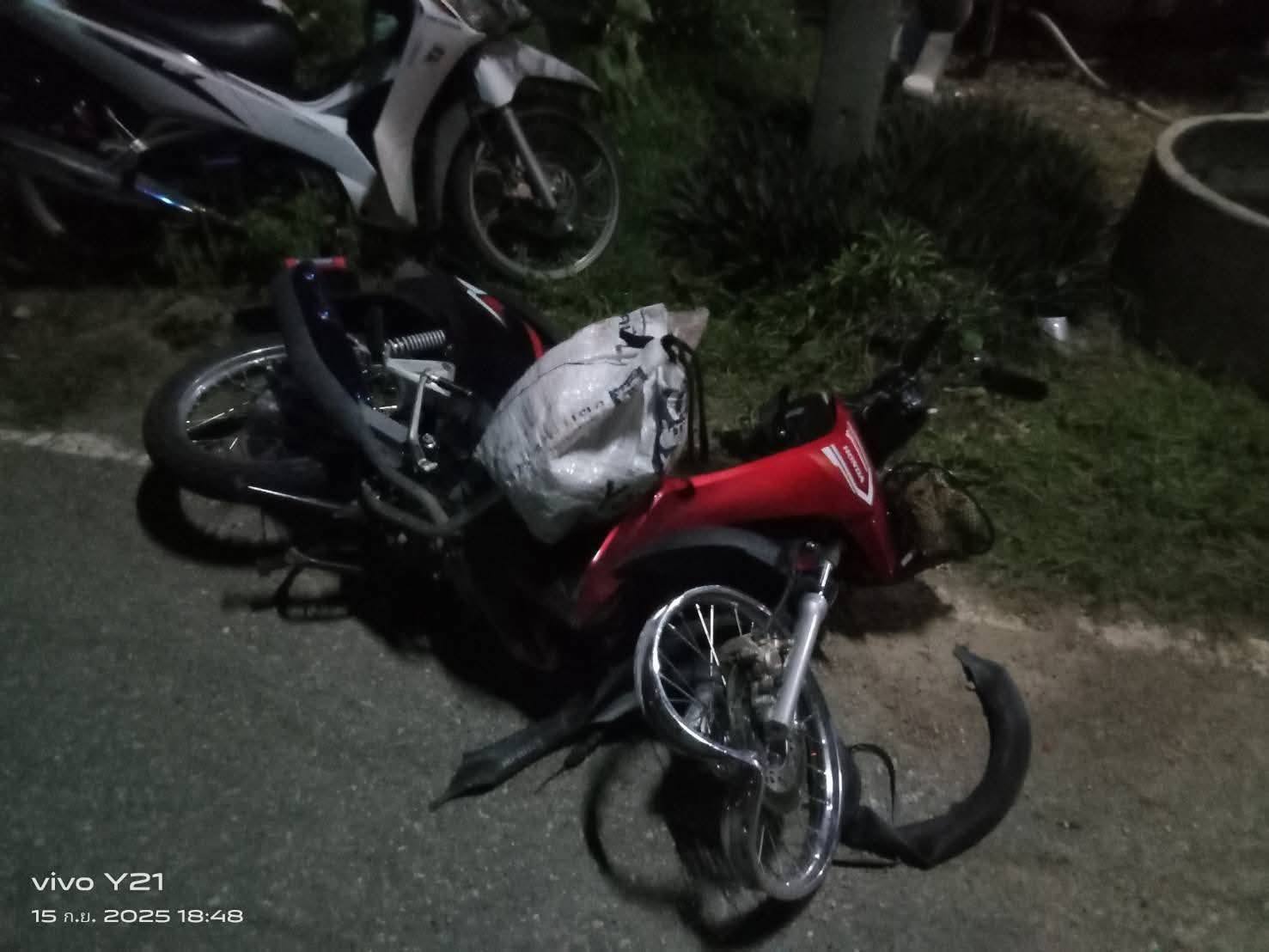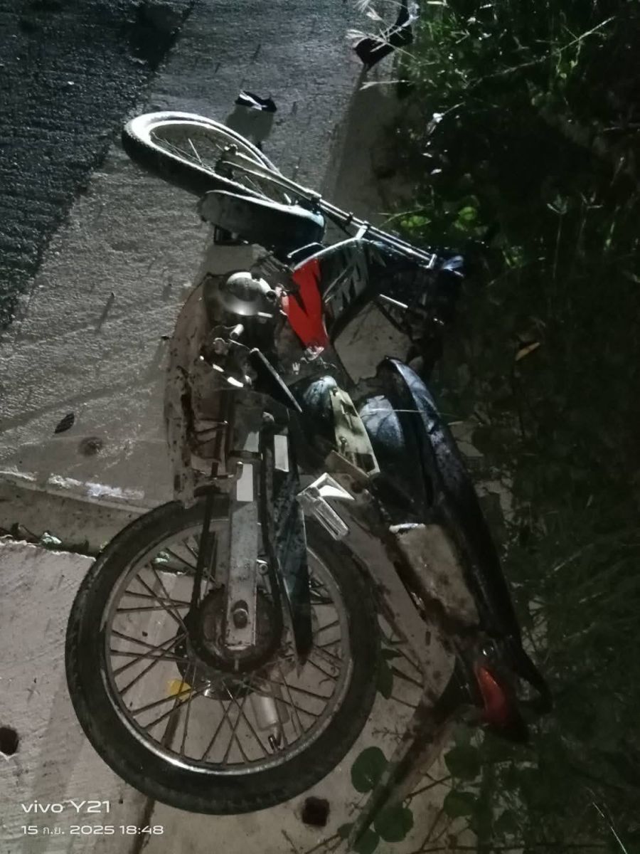 รถจักรยานยนต์ชนกันกลางถนน มีผู้เสียชีวิต เป็นหนุ่มชาวเมียนมา จ.กาญจนบุรี